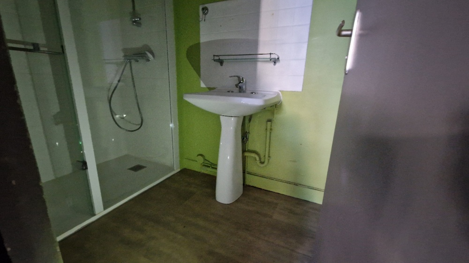 Ce logement (env 45m²) se compose : une pièce de vie dont une salle à manger/coin cuisine (env 14m²). Un salon (env 15m²), une chambre (env 10m²), une salle d'eau (cabine douche + vasque + prises machines), un wc séparé. Un coin terrasse ext privatif. Chauffage et production eau chaude électrique. TAE