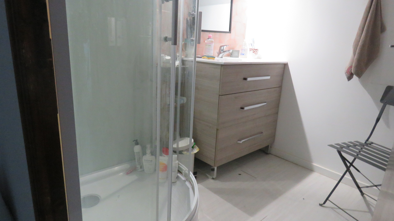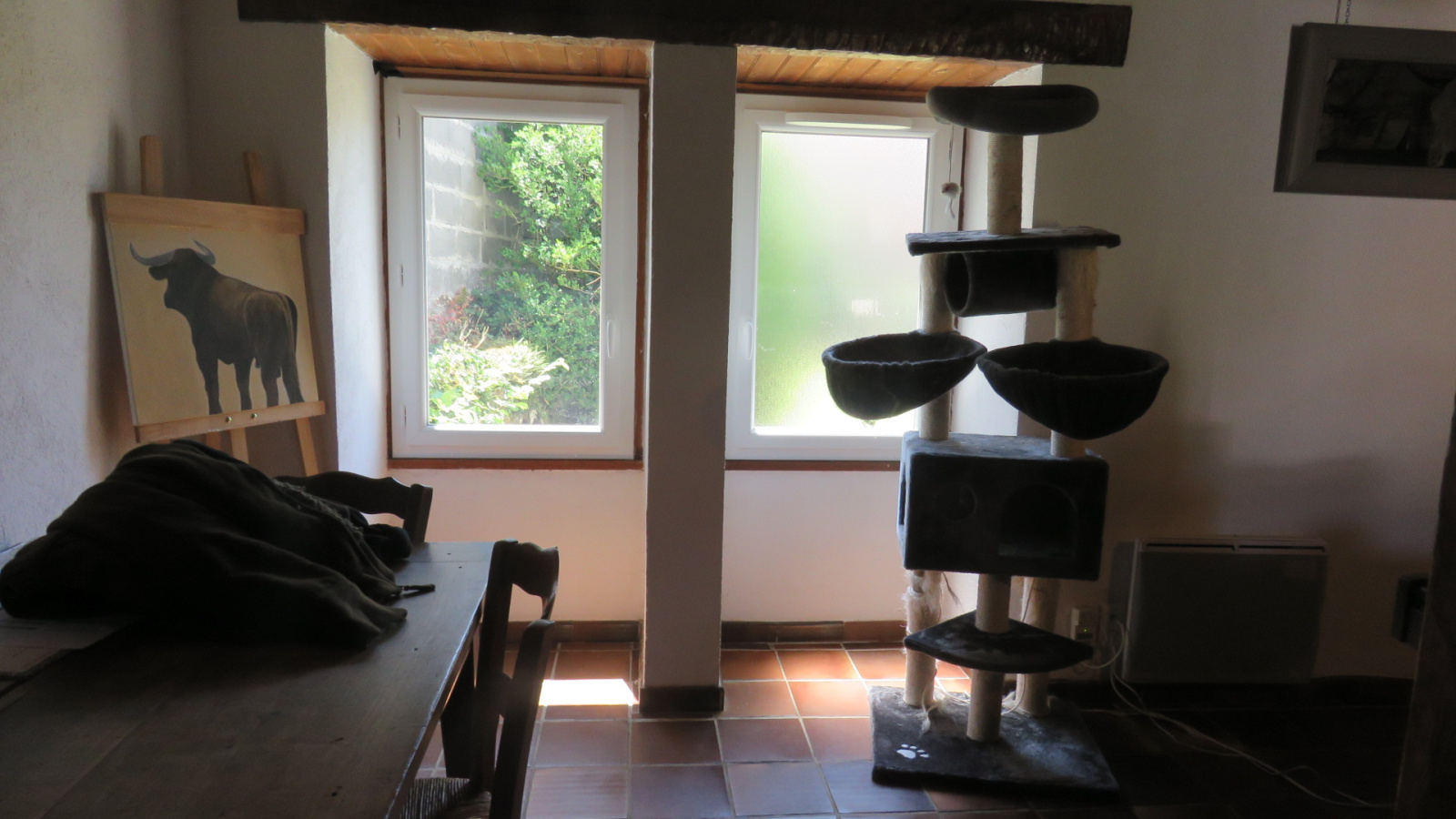 Maison (env 60m² habitables). Rdc : salle à manger/séjour (31,66 m²) avec une clim' réversible ; une cuisine (env 4m²) ; wc séparé. Etage : chauffage électrique (radiateurs). Palier (env 2,26m²) ; Salle d'eau (env 3m²) ; un espace de nuit (env 7m²) et une chambre (env 9,94m²).