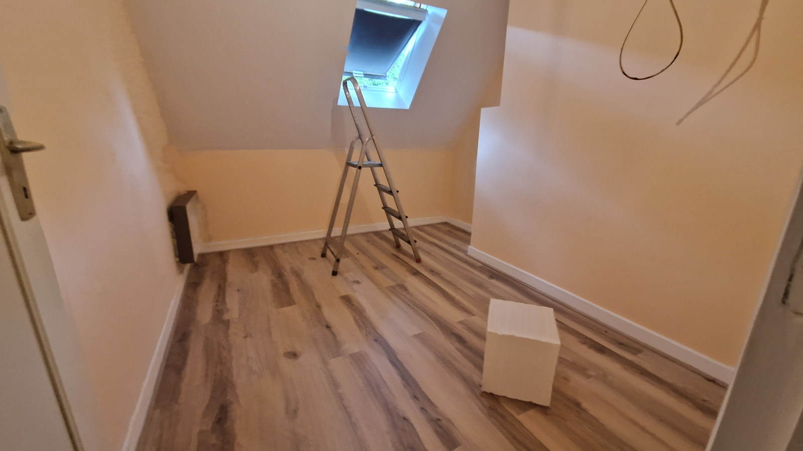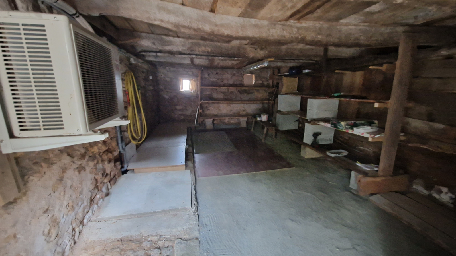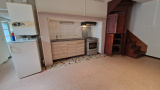 Cette location non meublée se compose : rdc = pièce de vie cuisine/séjour (env 32m²) pièce avec une clim'réversible), une chambre séparée (env 12m²), une salle d'eau rénovée avec douche + vasque + wc. Etage = un palier (env 2m²), 2 espaces de nuit mansardés (env 6 et 6,6m²), un wc séparé avec lave mains.