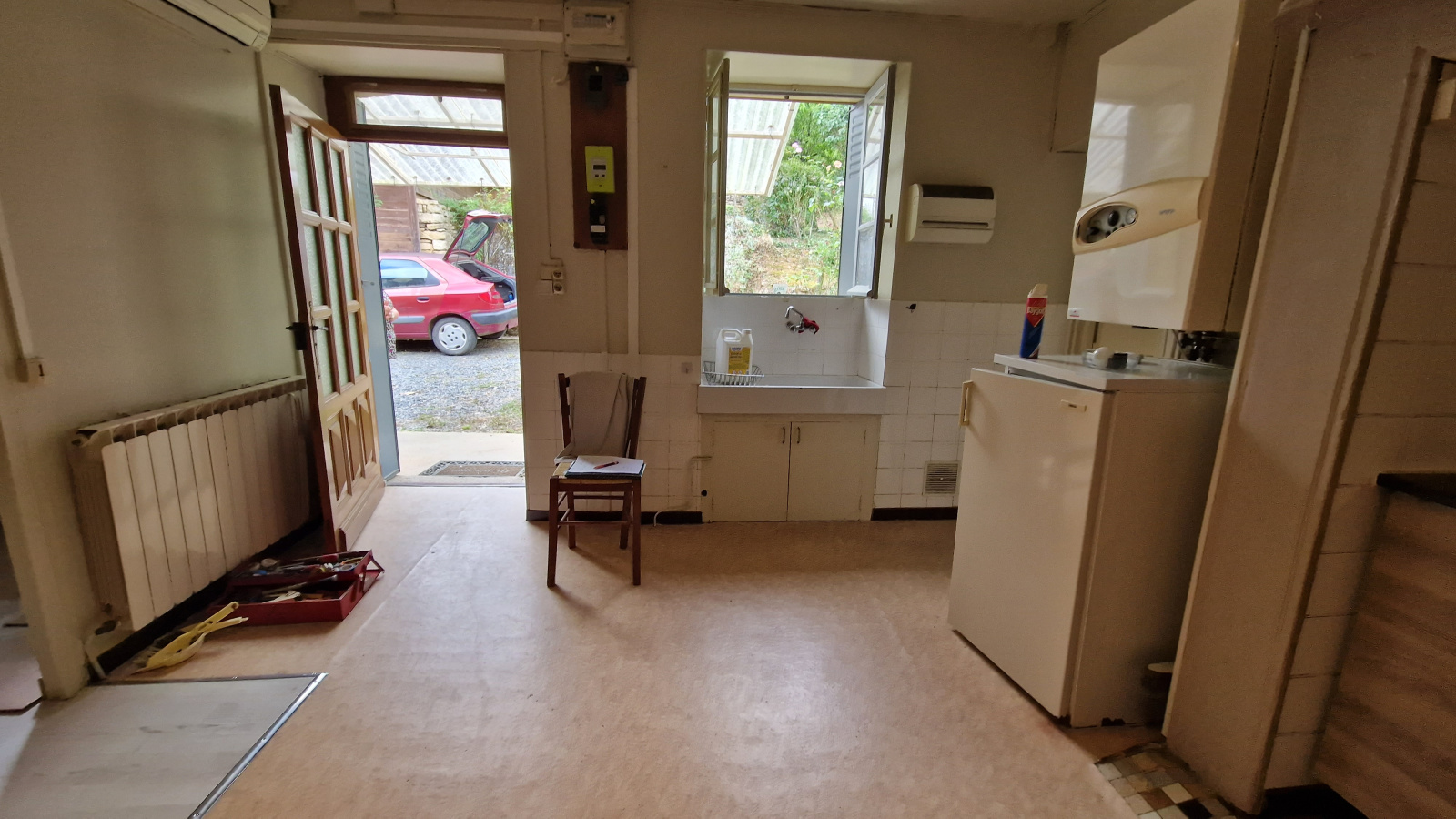 chauffage gaz citerne. isolation = survitrage et double vitrage. DPE : classe E (nouvelle version). Assainissement individuel. Une cour non fermée, devant l'habitation.