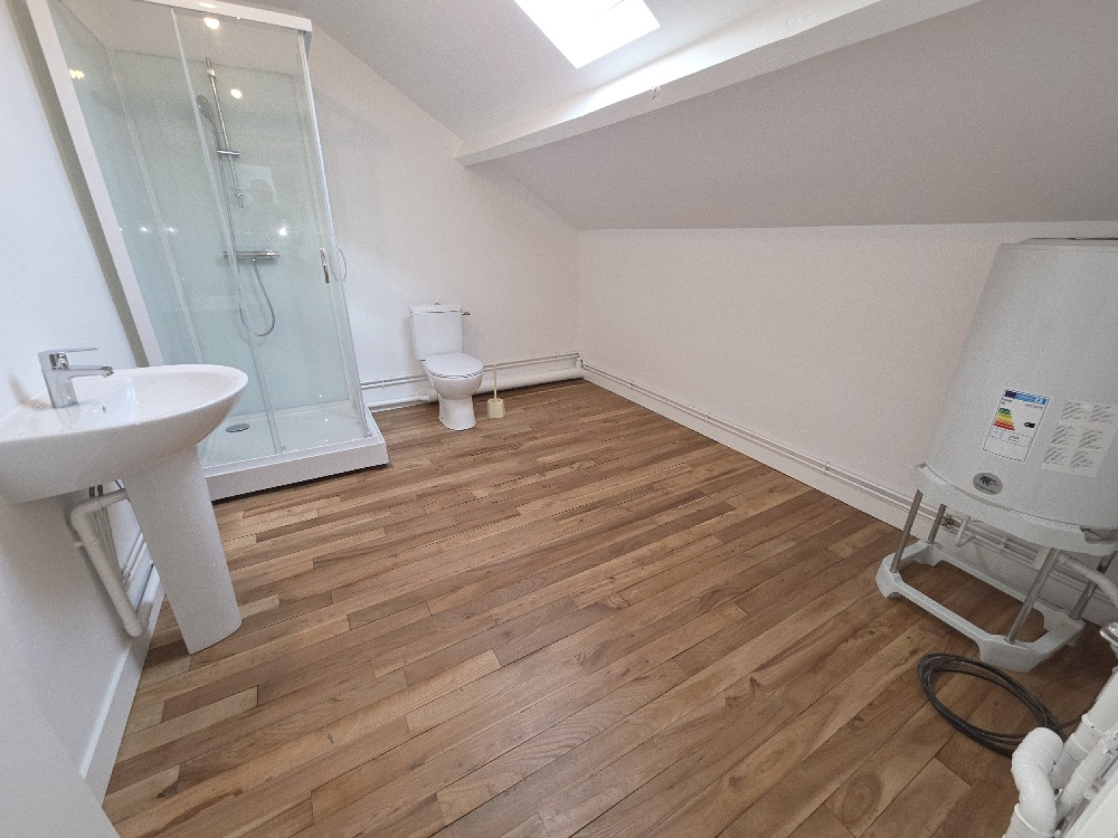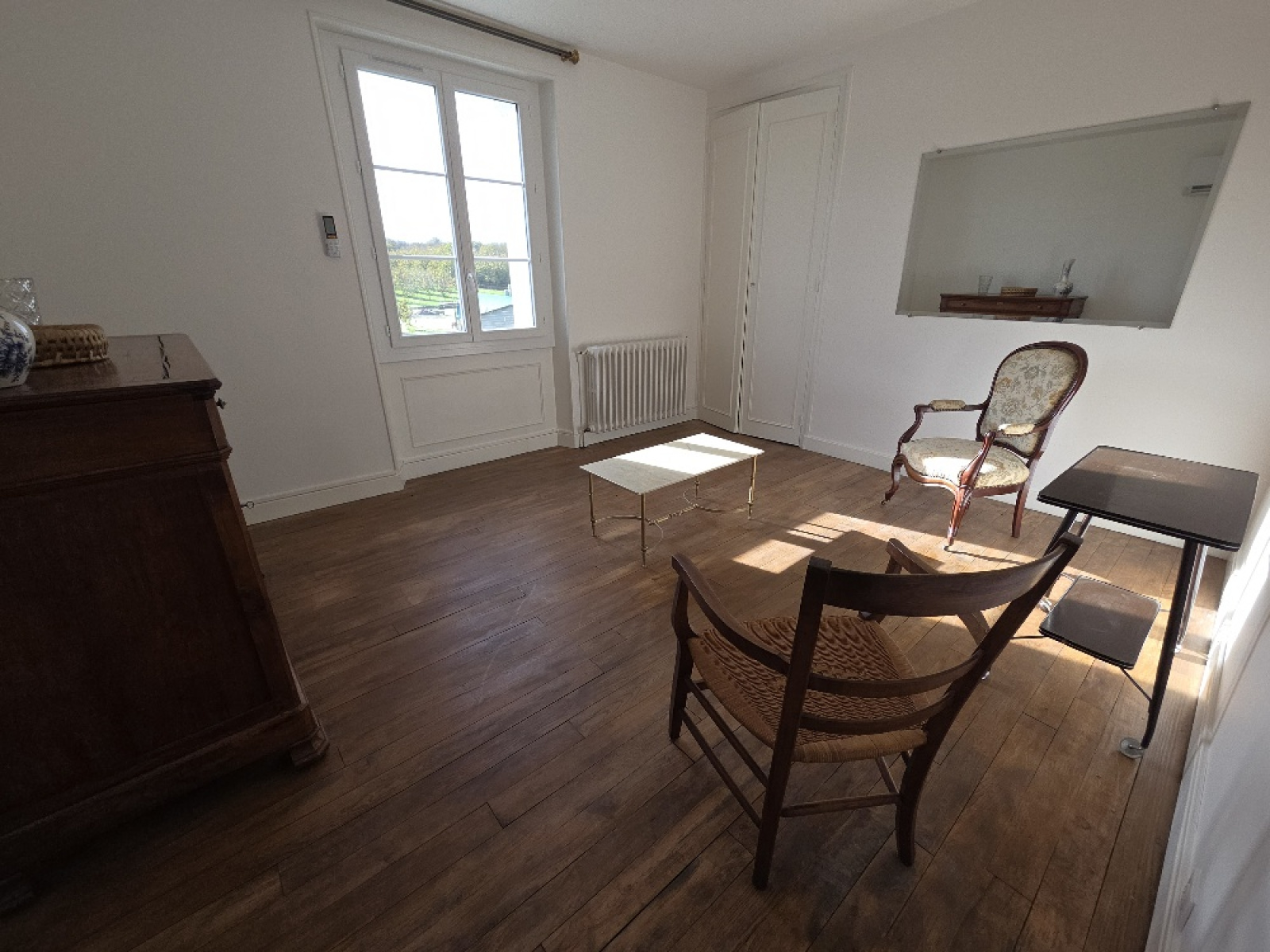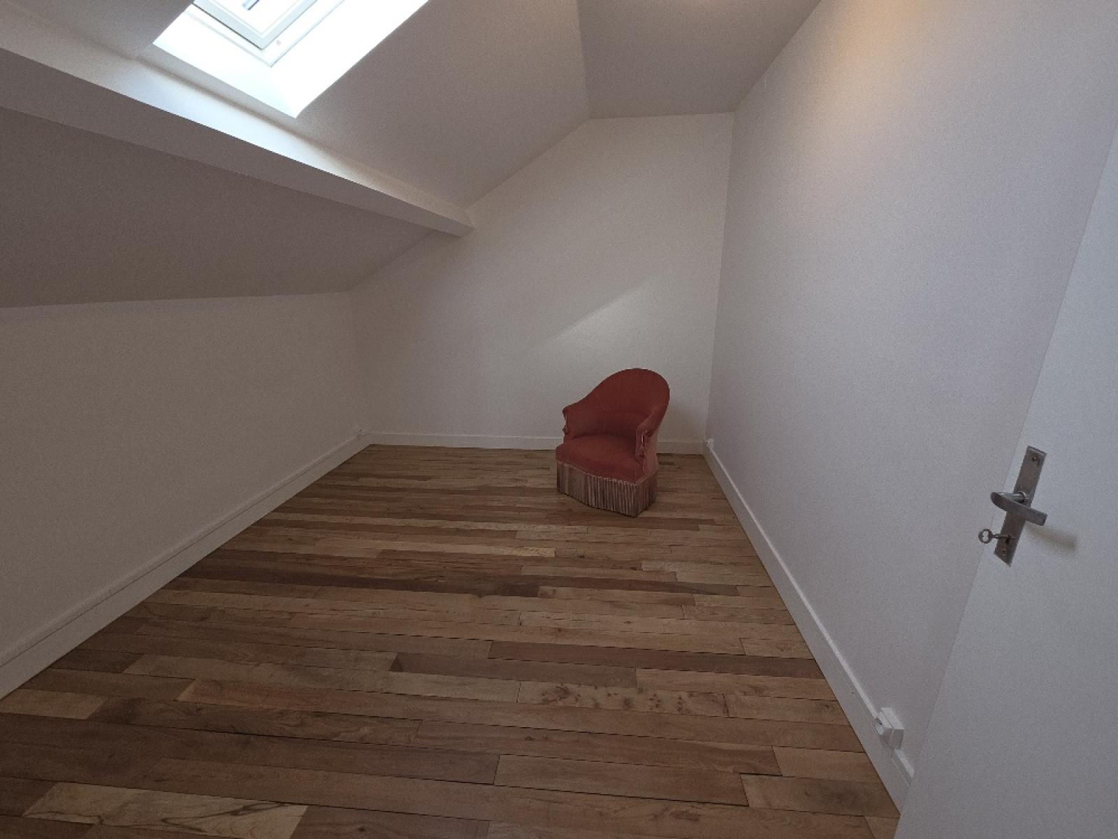 Cet appartement (lumineux) au 2ème étage (env 51,98 m² habitables) (non meublé) se compose d'un palier privatif, pouvant faire office de pièce de détente. Dans l'apprtement : un joli salon, un dégagement, une chambre, un espace de nuit (avec vélux), une salle d'eau avec éléments neufs (douche + wc + vasque), une cuisine avec éléments neufs dont une hotte+plaques électriques+frigo). Un jardin d'agrément partagé avec les 2 autres logements.