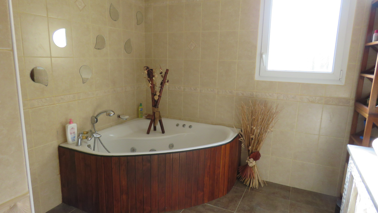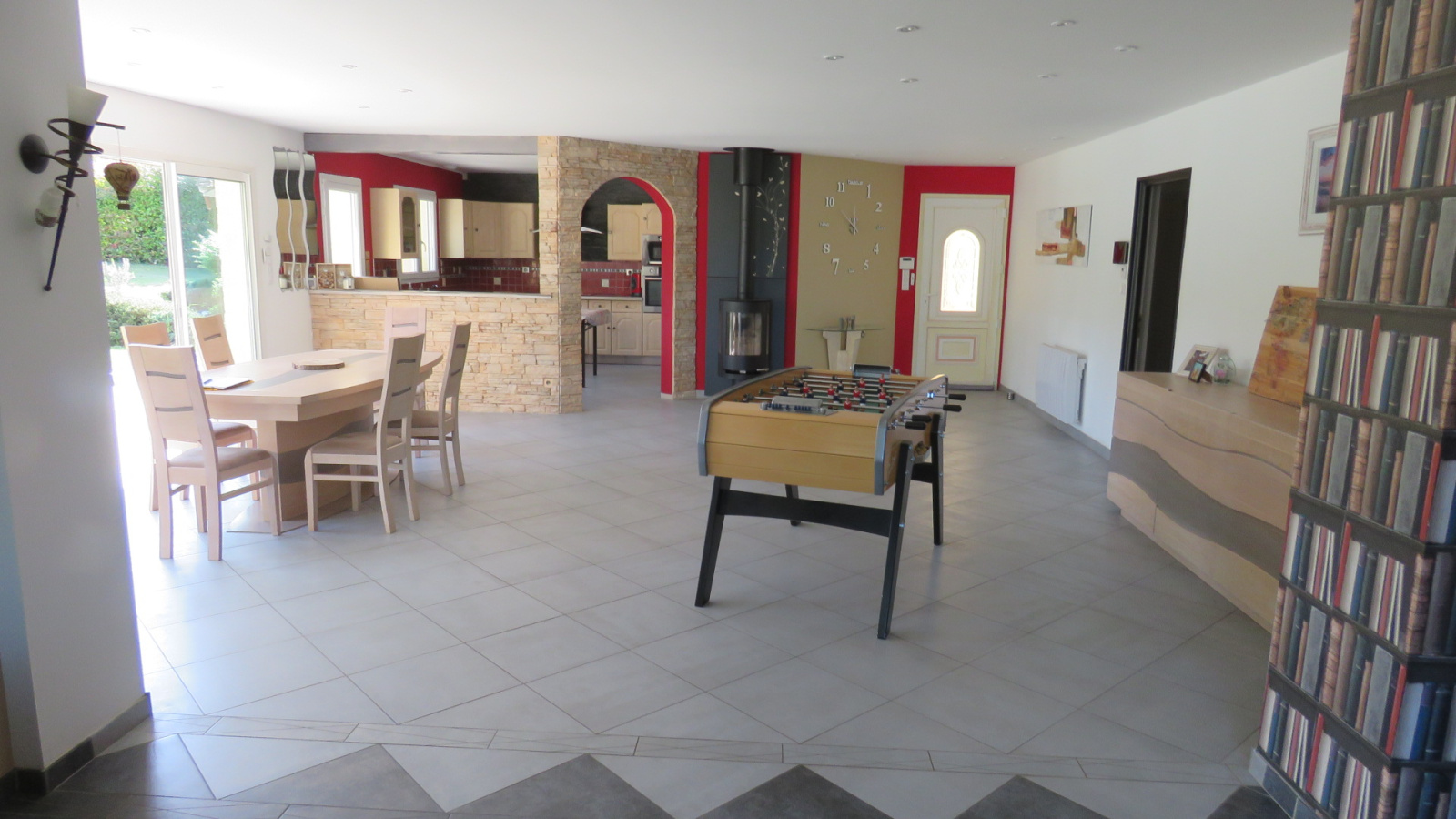 Maison individuelle (env 172m²) - en plain pied, se composant d'une arrière cuisine. Une cuisine équipée (env 14m²) ouverte sur un salon/salle à manger. Pièce très lumineuse et spacieuse (env 55m²). 5 chambres, une salle de bain avec baignoire + douche. wc séparé. Cellier.