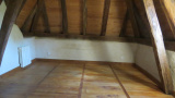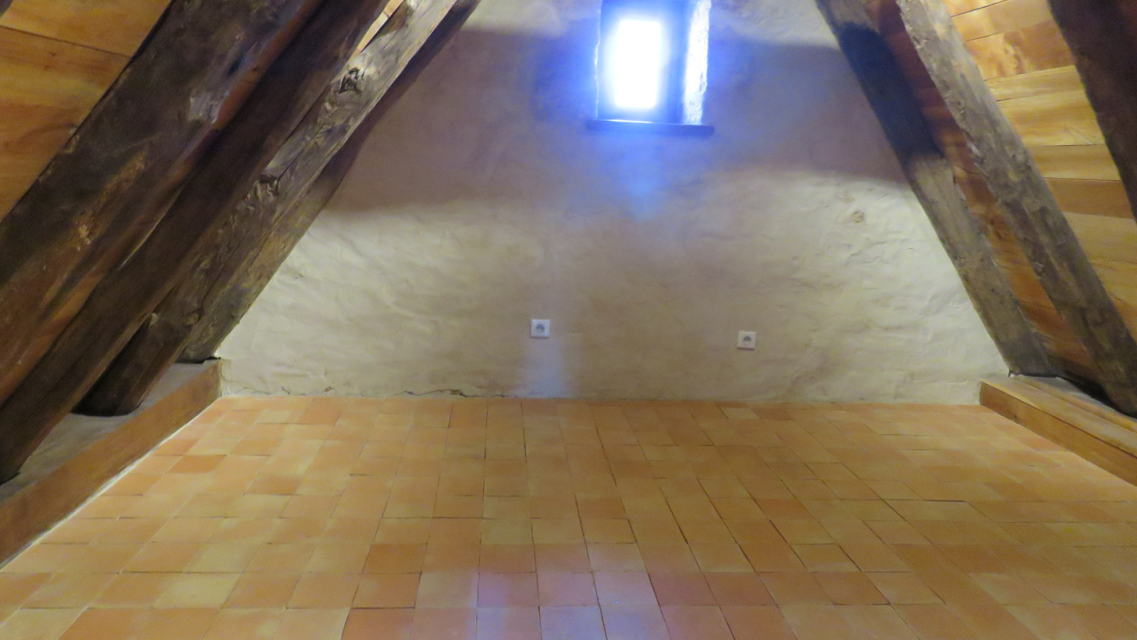 Cette habitation surélevée sur cave se compose : 1er palier : un joli salon avec sol en tomettes ; une cuisine aménagée. Mansardes : un palier ; une chambre et un espace de nuit, une salle de bains avec wc. Isolation : double vitrage. Chauffage électrique. Chauffe-eau électrique. DPE (nouvelle version) : classe F. Tout à l'égout.