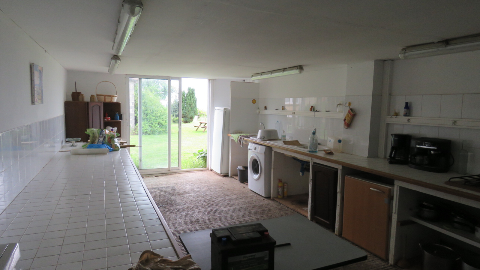Un local aménagé (env 100m²) qui peut servir d'habitation, sur 2 niveaux. rdc = une cuisine/séjour. Etage = 6 chambres, 2 toilettes, 2 salles d'eau.
