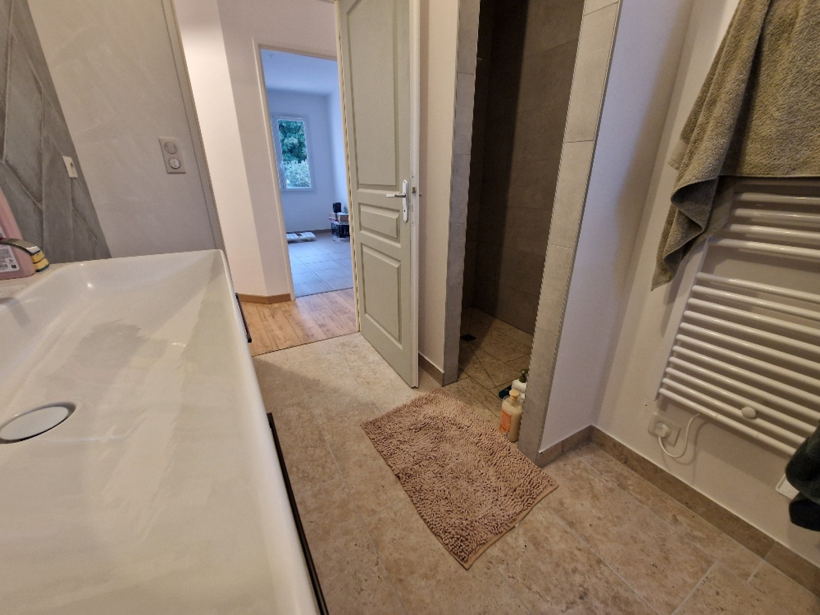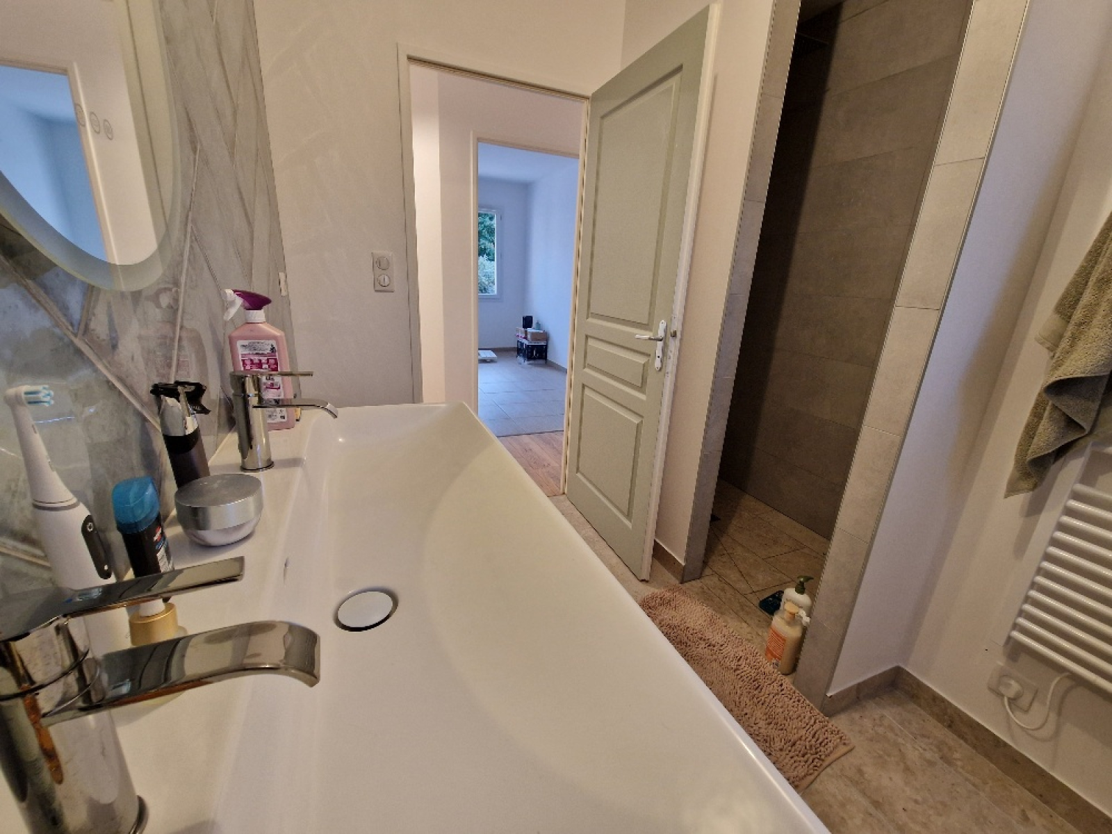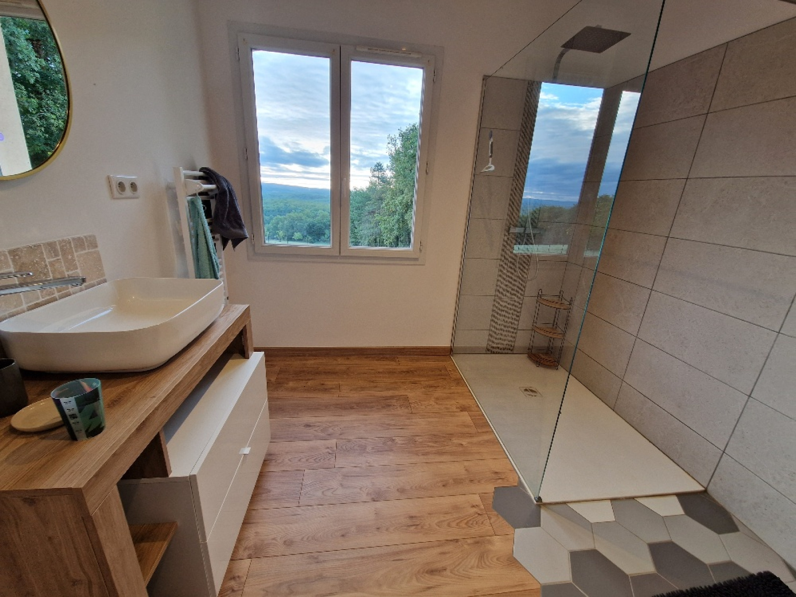 Ce plain pied se compose = une entrée et dégagement (env 10m²) ; un magnifique séjour avec son coin cuisine (env 53m²). 3 baies vitrées dans cette pièce. Pièce de vie lumineuse avec une belle vue sur le terrain. Une buanderie, avec ses prises machines. Une chambre parentale (avec vue sur la campagne) + un grand dressing et sa salle d'eau avec wc. 3 autres chambres indépendantes. Un bureau. Une salle d'eau (env 6m²) avec double vasque et douche italienne. Un wc séparé.
