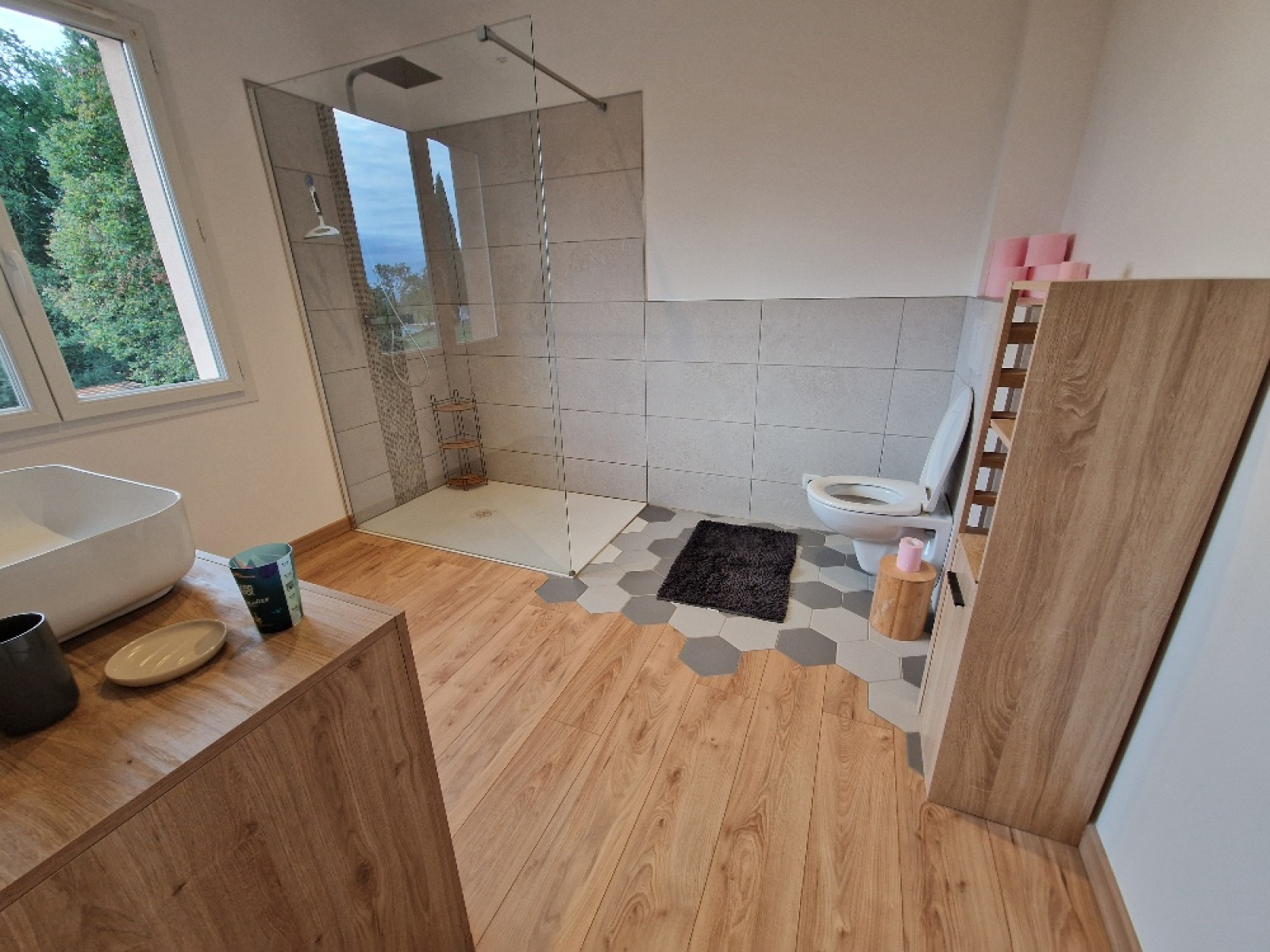 Construction 2009 - Type Omega. Superficie habitable = (148m²) (env). DPE = classe C (nouvelle version). Chauffage électrique au sol (thermostat central avec 3 zones) - Chauffe eau électrique - volets électriques + volets pvc manuels pour les chambres. Assainissement individuel = micro-station à flux vertical.