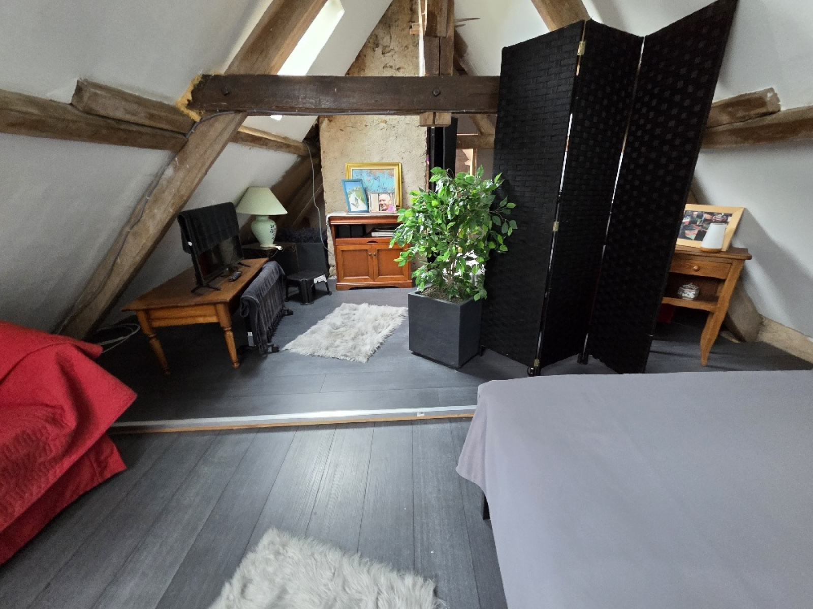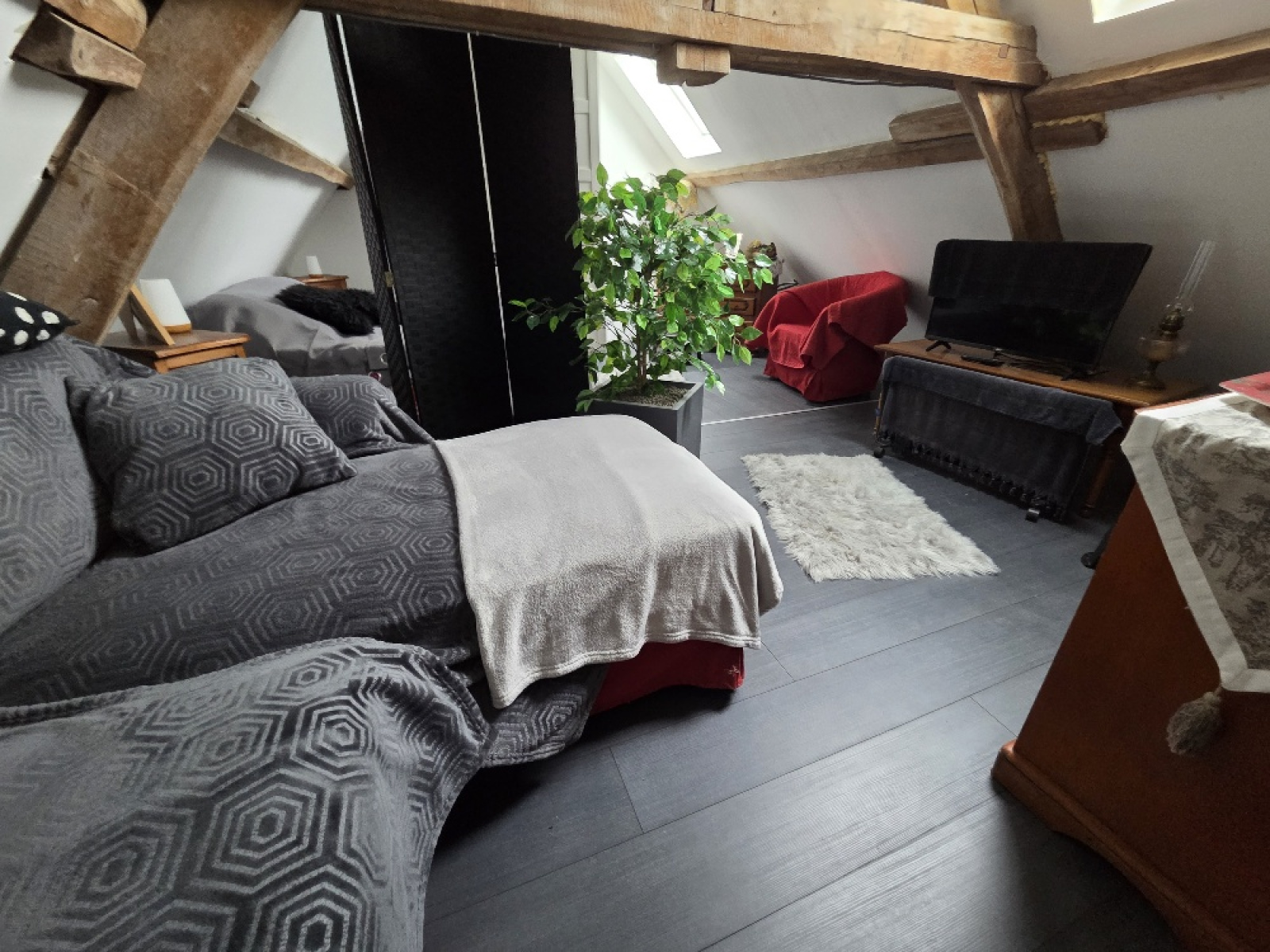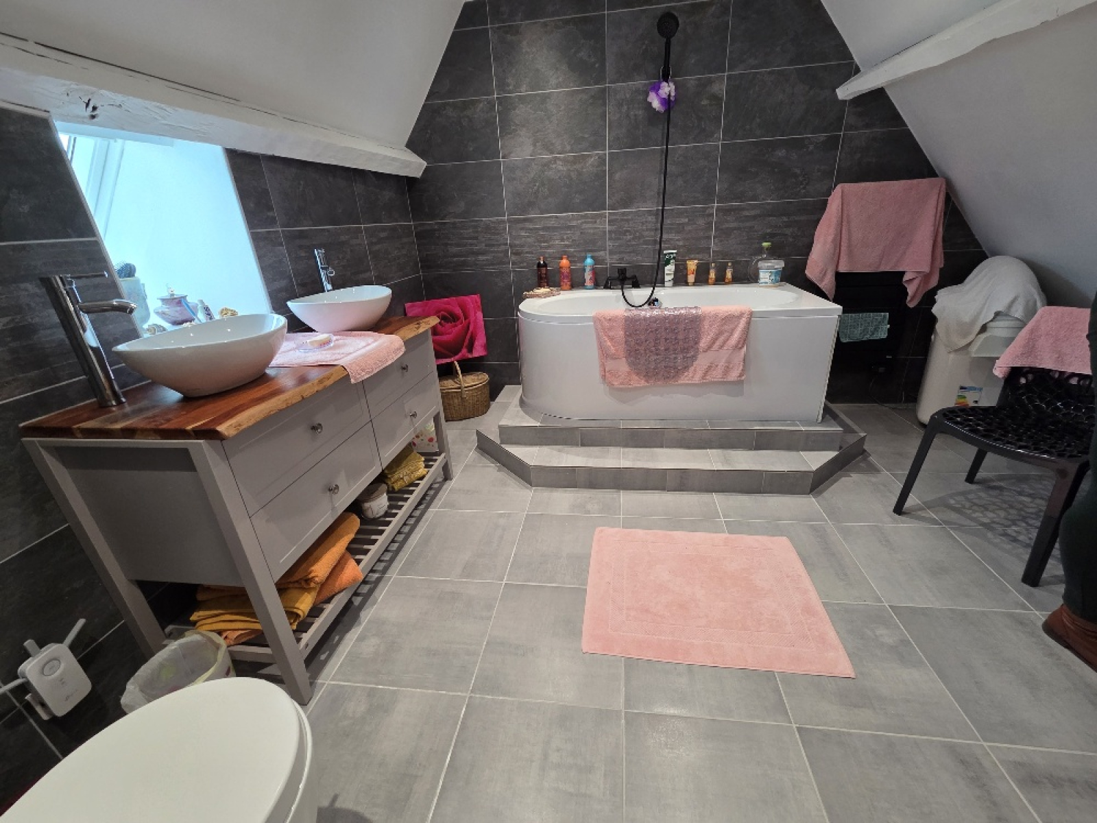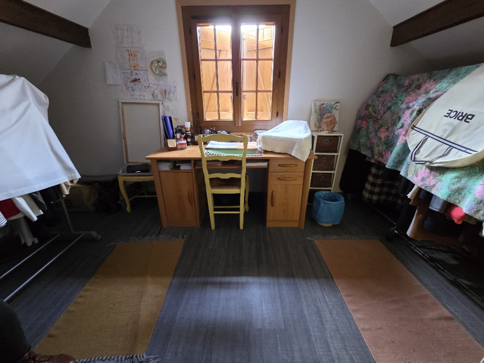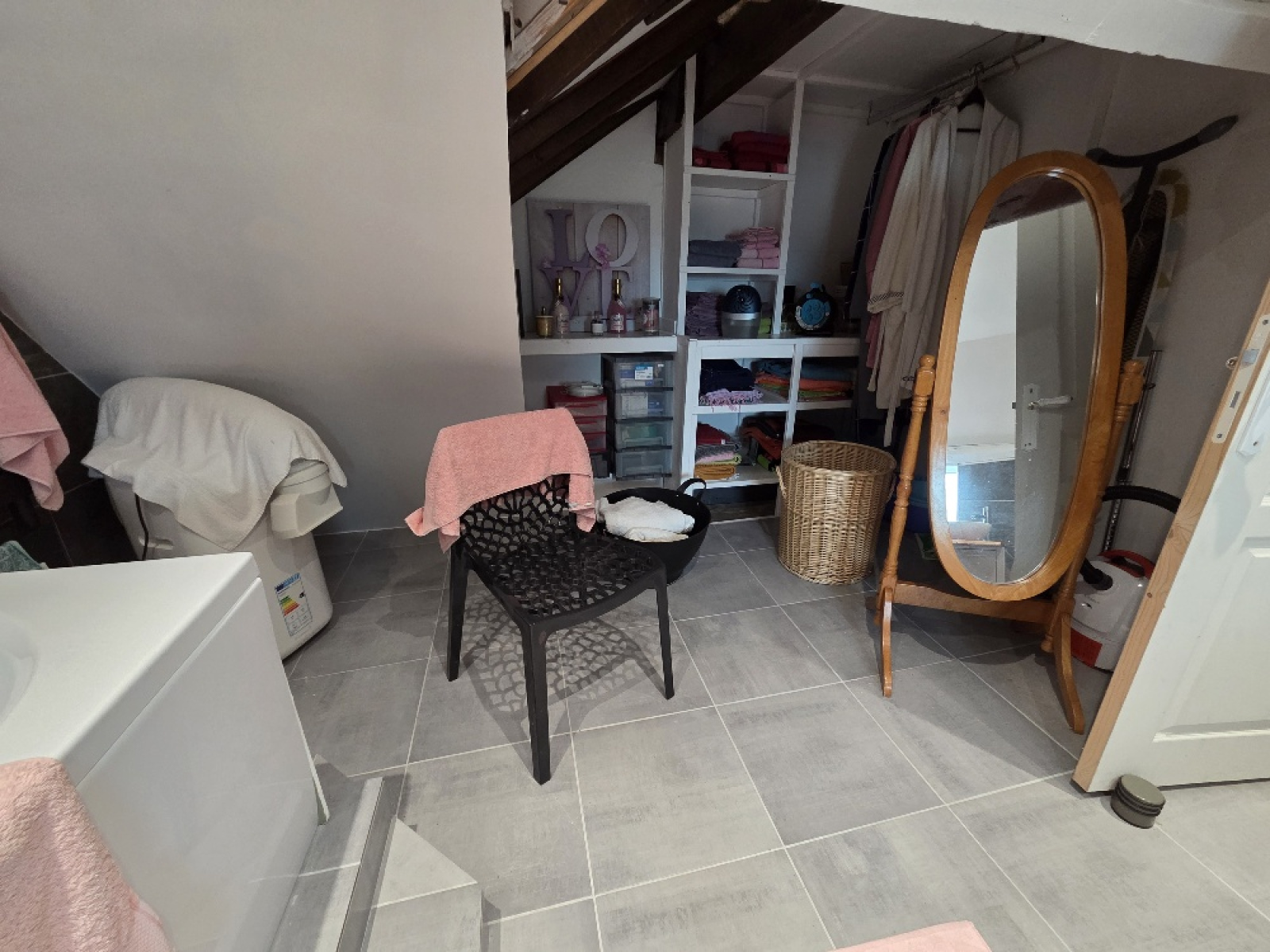 Mansardes : un palier (avec rangement) (env 2m²), un bureau (env 9,15m²), une chambre (env 10,80m²), une jolie salle de bain (baignoire+ un wc suspendu) (env 7,30m²).