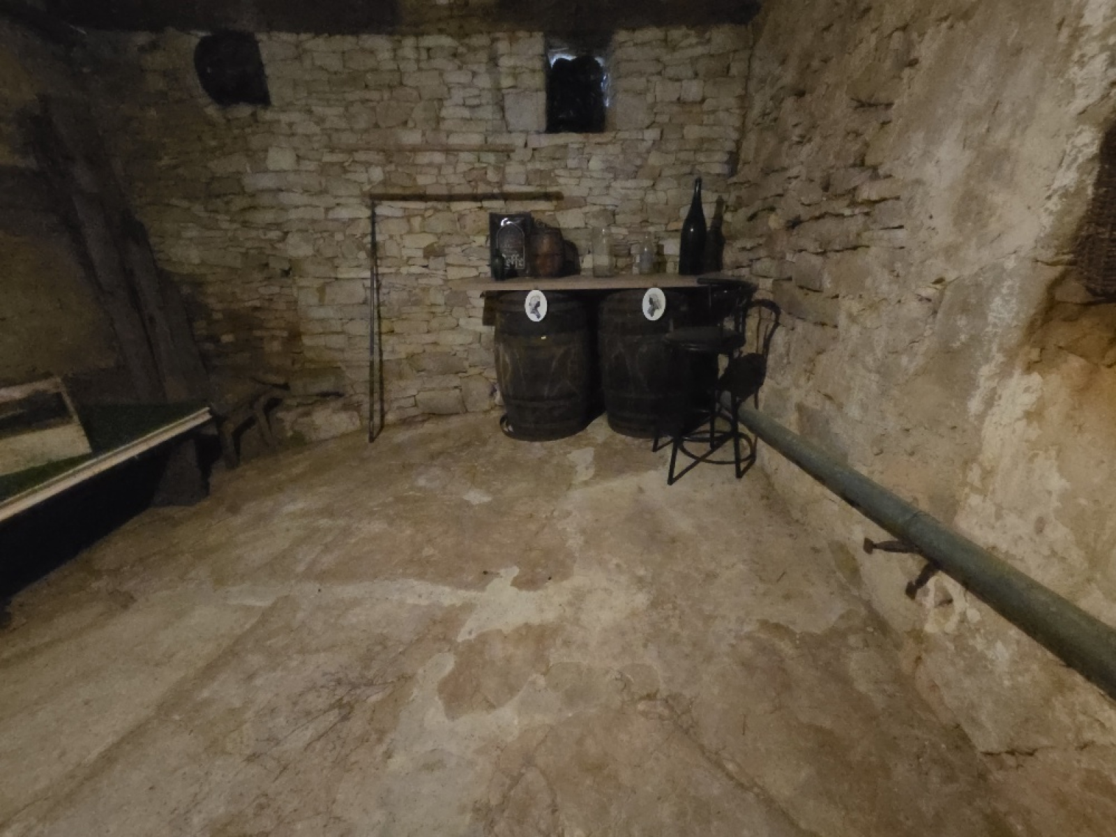Partie basse : Une cave voutée divisée en 2 parties, dont une donnant sur un coin détente. Une chaufferie (divisée en 2 parties) (avec chaudière fioul + une cuve à fioul).