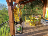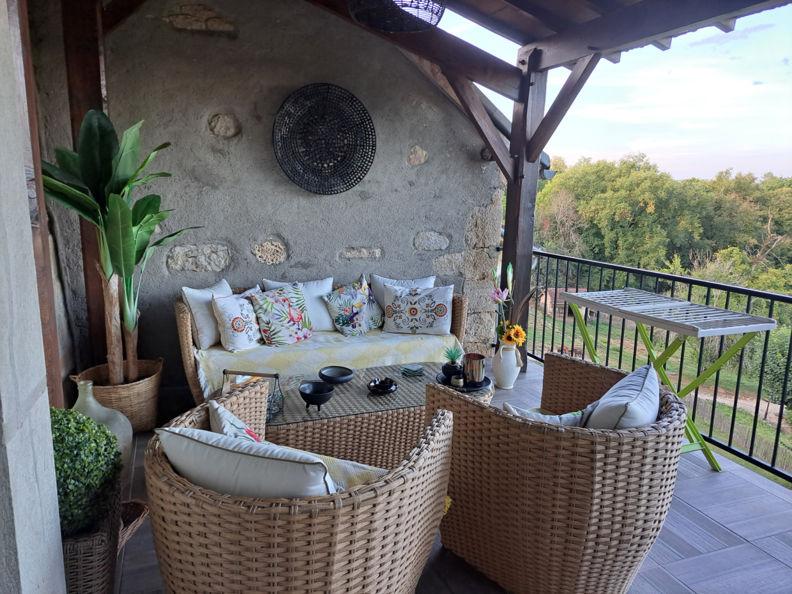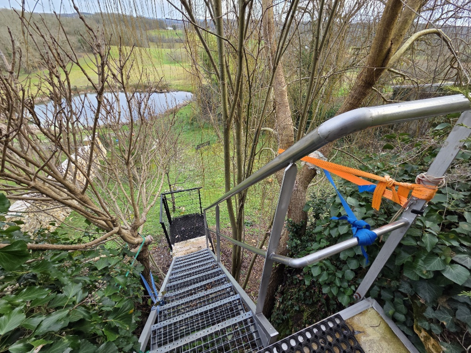 Depuis la terrasse, un escalier pour accéder au terrain.