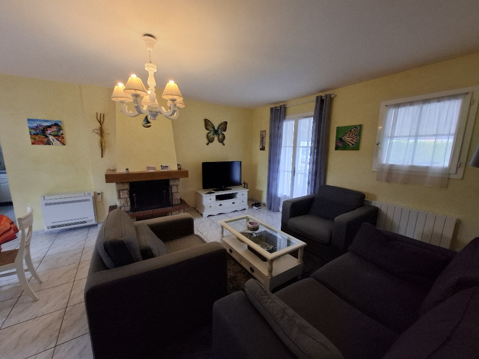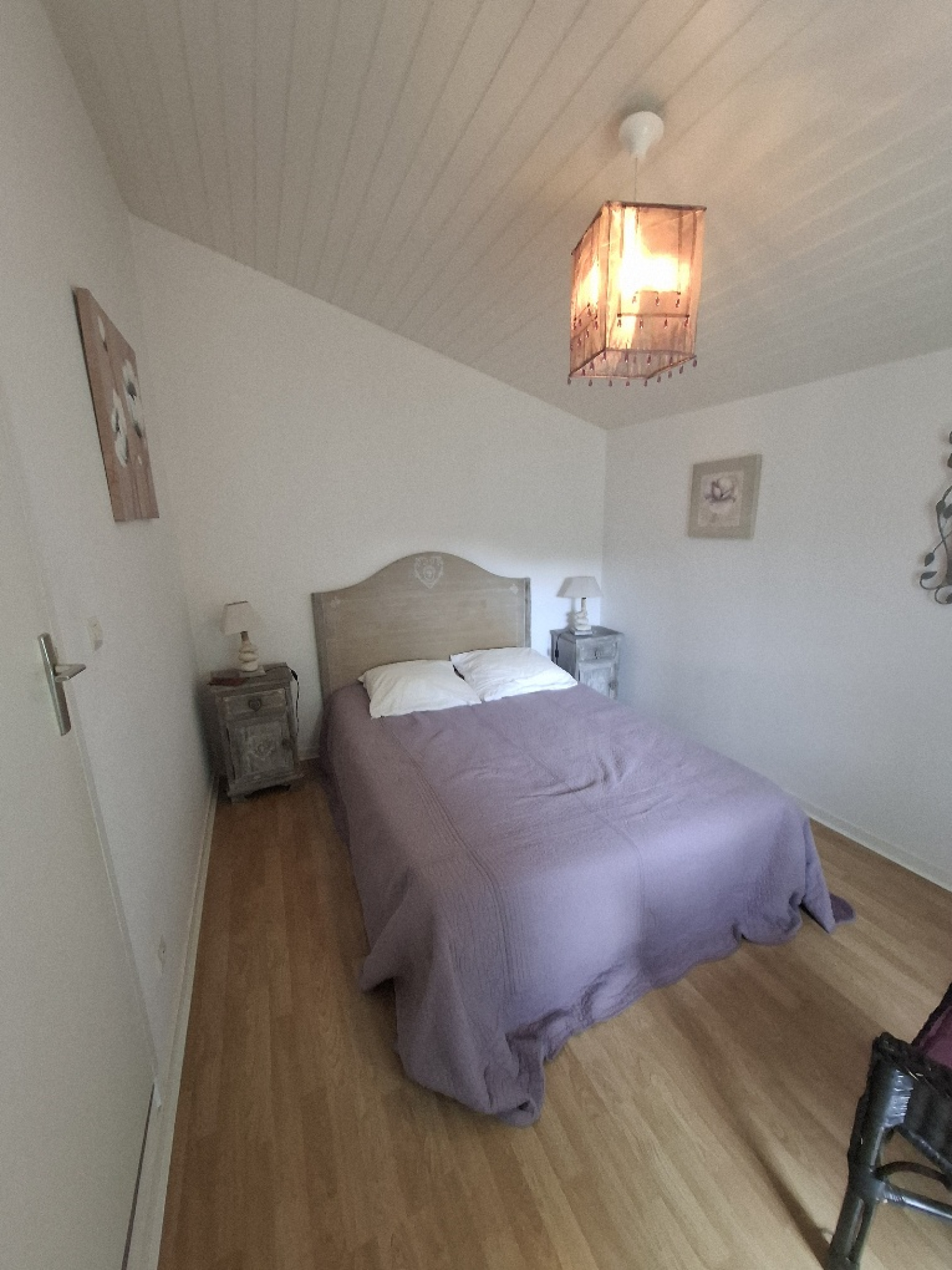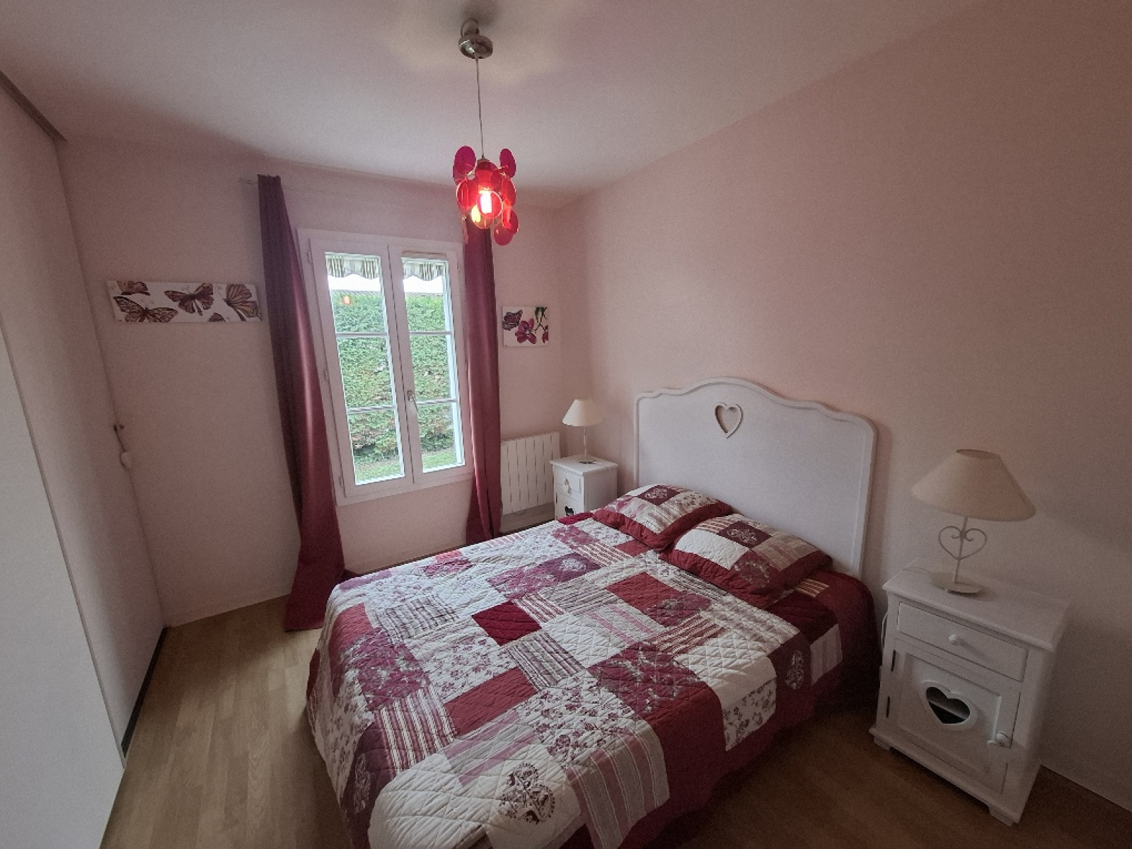 Agréable plain-pied, au calme, en bon état, et comprenant: salon avec cheminée, 2 chambres, cuisine équipée et séparée, dégagement, salle d'eau, wc indépendant. Garage. Jardinet plat et à l'abri des regards. Plage à moins d'un km . Tous commerces et services. 1 place de parking privative.