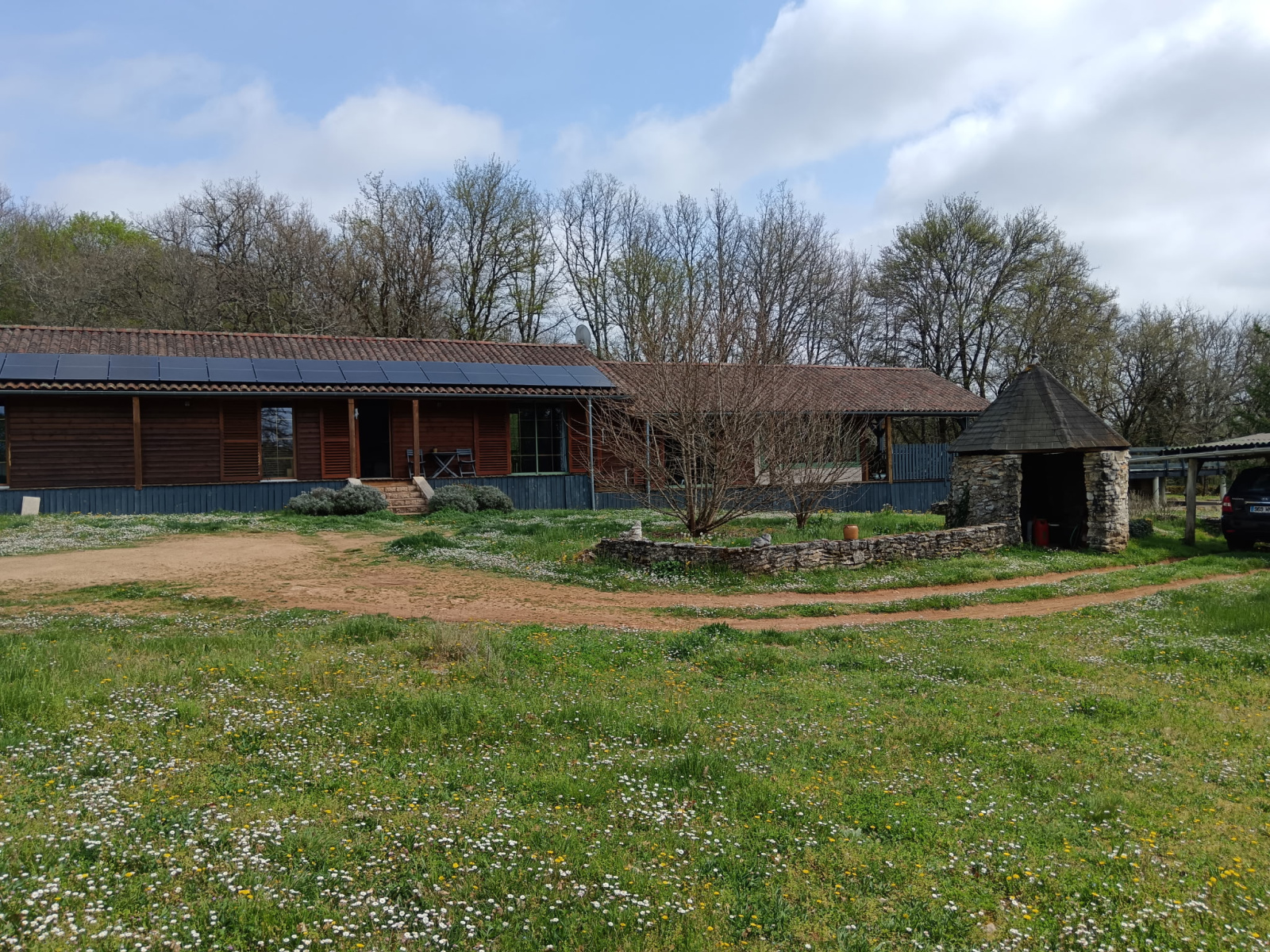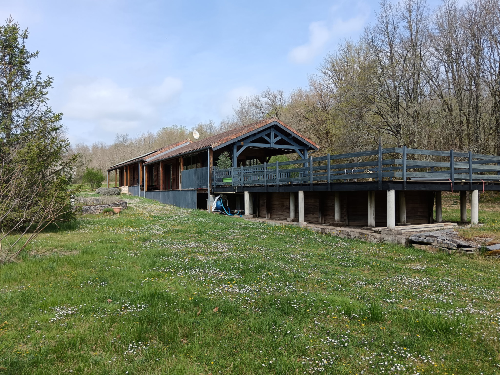 En plain pied avec un terrain en partie boisé (1,8HA) - Un garage individuel (env 23m²), à l'entrée de la propriété.
