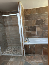 Un gîte (env 48m² habitables) dont une pièce de vie, (cuisine/salon), une chambre, une salle d'eau et wc + 2 pièces attenantes au gîte.