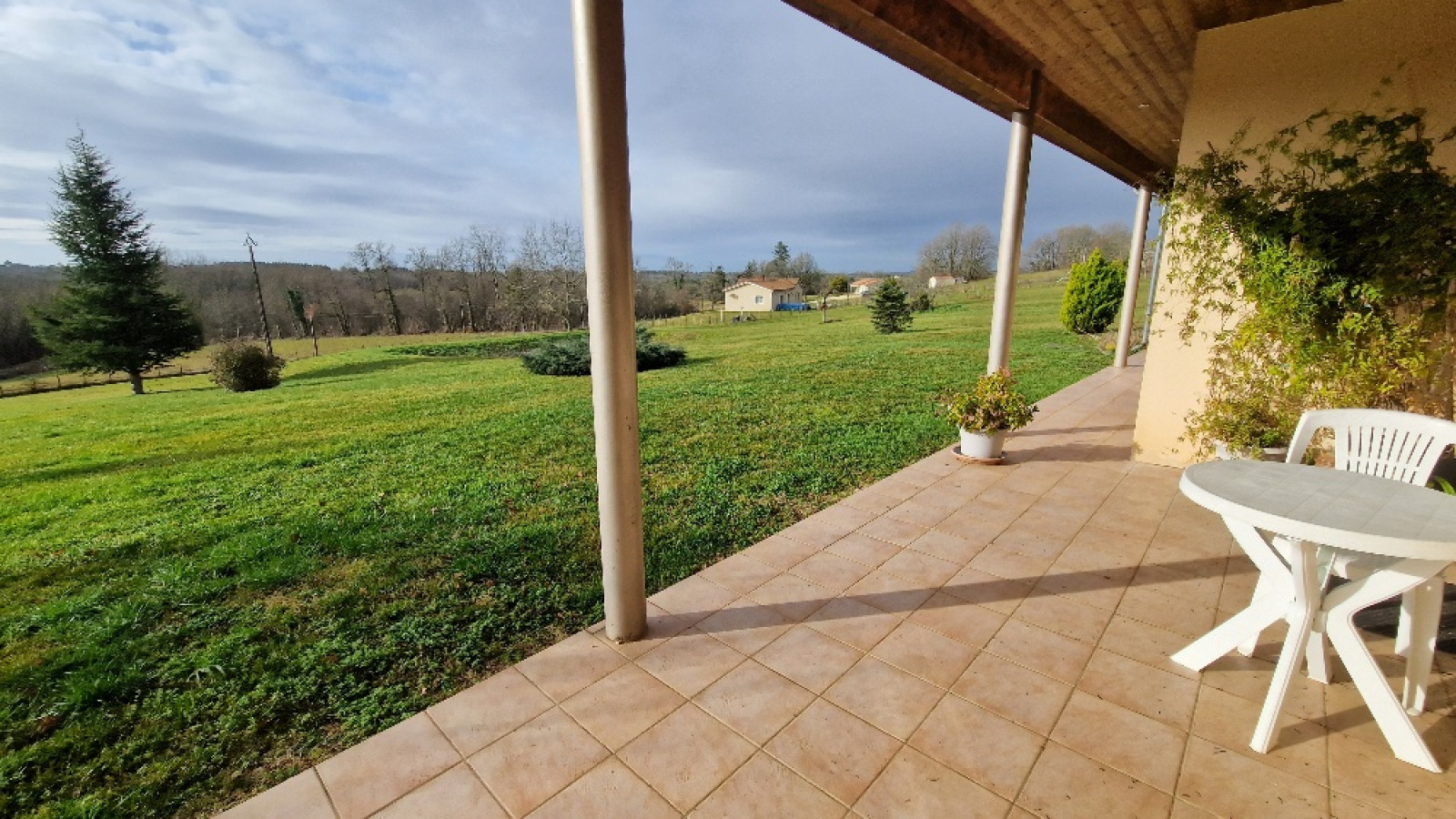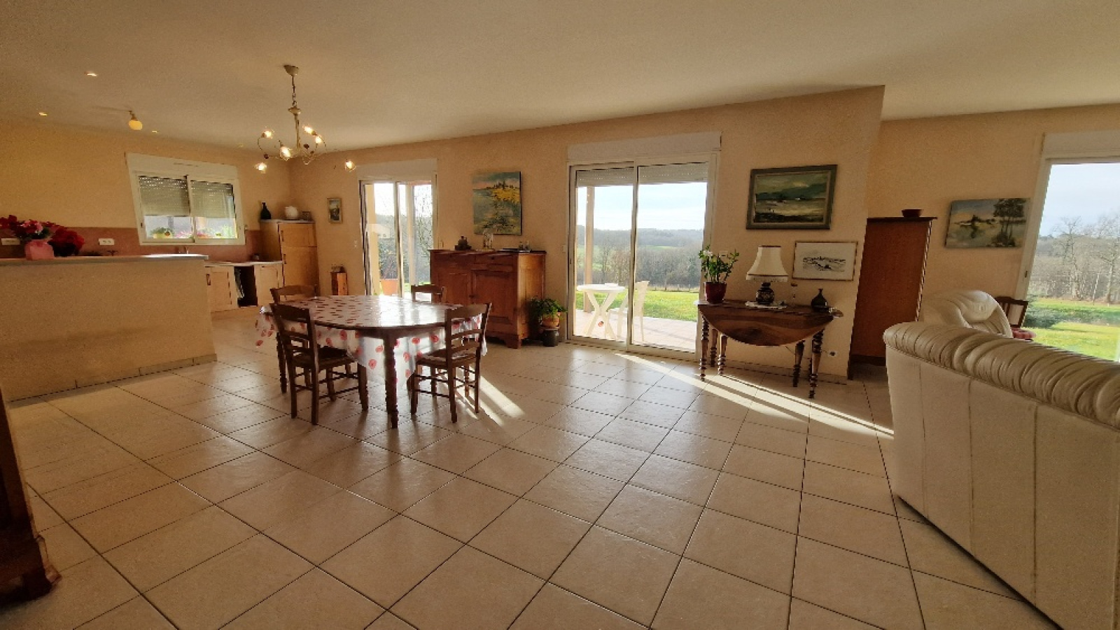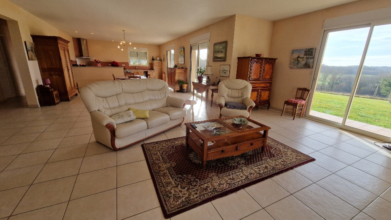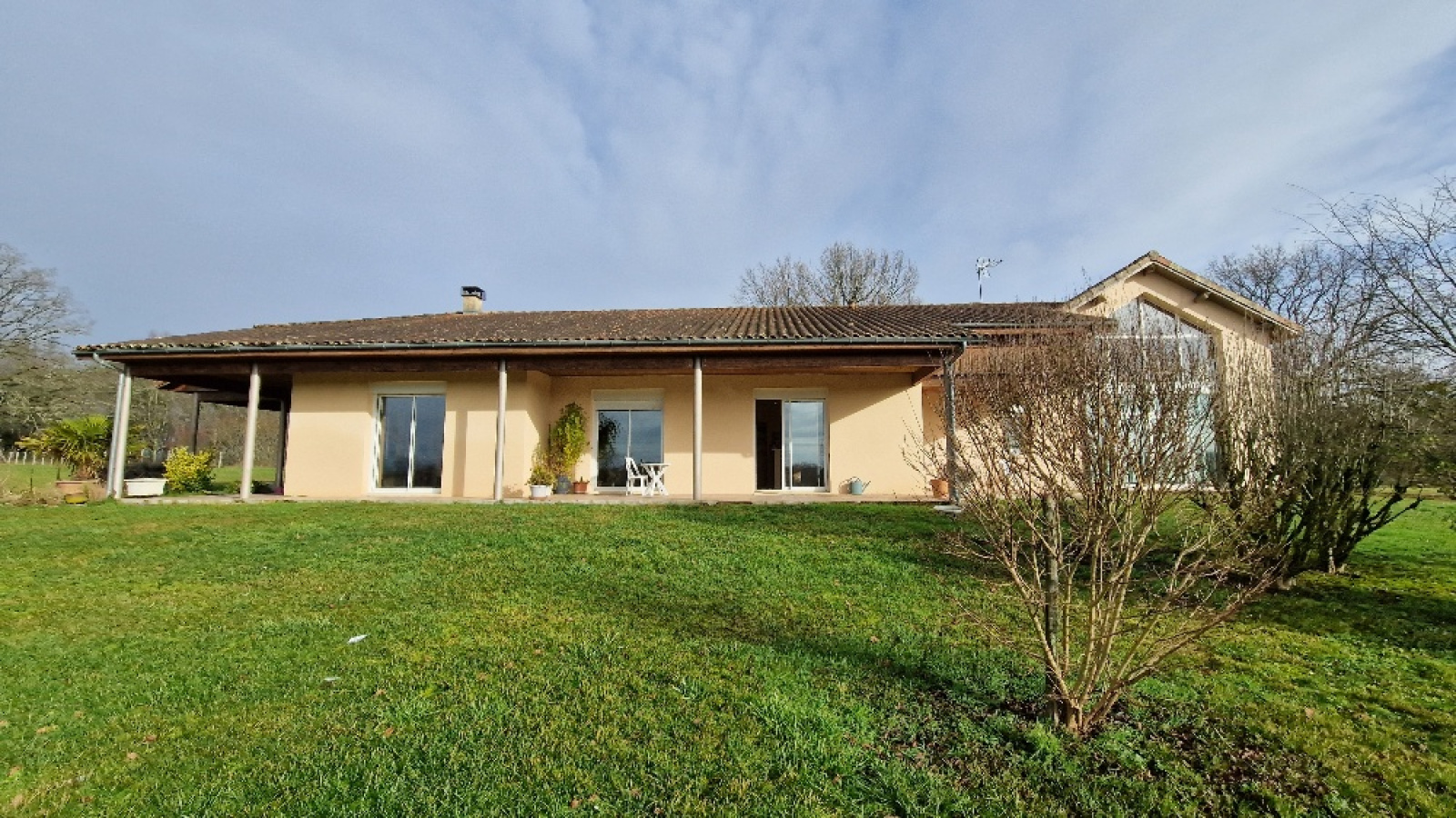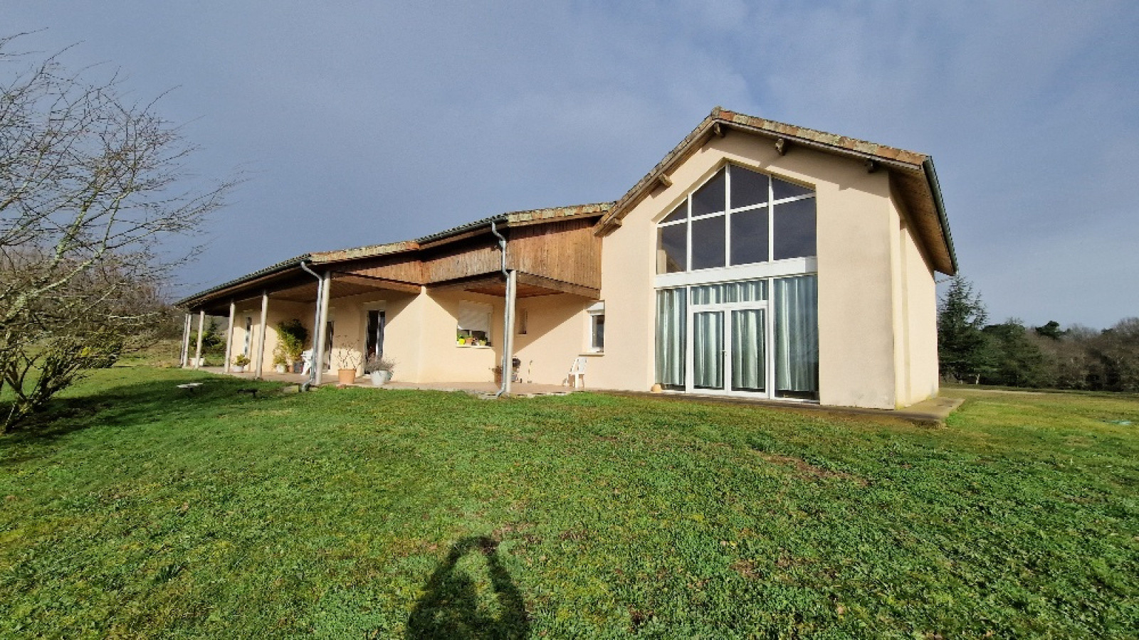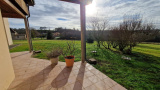 Propriété en vente en exclusivité avec l'agence immobilière Terres et Pierres en Périgord. Secteur Sorges et Ligueux - A moins de 20 kms de Périgueux et à 3kms des commerces. A la campagne, propriété avec un parc fermé (env 1H5) dont portail électrique à l'entrée. Construction réalisée par des artisans locaux (renommés) (dossier construction complet). Construction 2005, maison individuelle (surface batîe au sol, env 270m²), plain pied avec un garage attenant (env 53m²) avec 2 portes électriques. Un atelier attenant (env 70m²) (chauffage au sol), avec un toit cathédrale et un toilette + lave mains. (possibilité d'aménager 2 chambres). Cette habitation, très lumineuse, se compose : un entrée avec espace de rangement, un couloir, un wc séparé, une magnifique pièce de vie salon/cuisine équipée, dont 4 baies vitrées avec accès à la terrasse. Ce salon propose une belle cheminée mûrale, fermée. 2 chambres spacieuses, avec chacune son wc, sa salle d'eau et sa salle de bain (baignoire balnéo + cabine douche). Une de ces chambres a un accès direct sur la terrasse couverte et non fermée. Terrasse plein sud. Chauffage au sol au fioul basse température. Cuve fioul enterrée (env 3000L). Isolation : double vitrage. Volets électriques. DPE (nouvelle version) : classe D. Assainissement individuel. Une cuisine d'été avec accès sur la façade principale. Contacter Mr Michel Lachaud, agent commercial immobilier, tél pro 06/87/10/61/88 pour tout complément d'information et visiter ce joli lieu de vie en Périgord blanc.