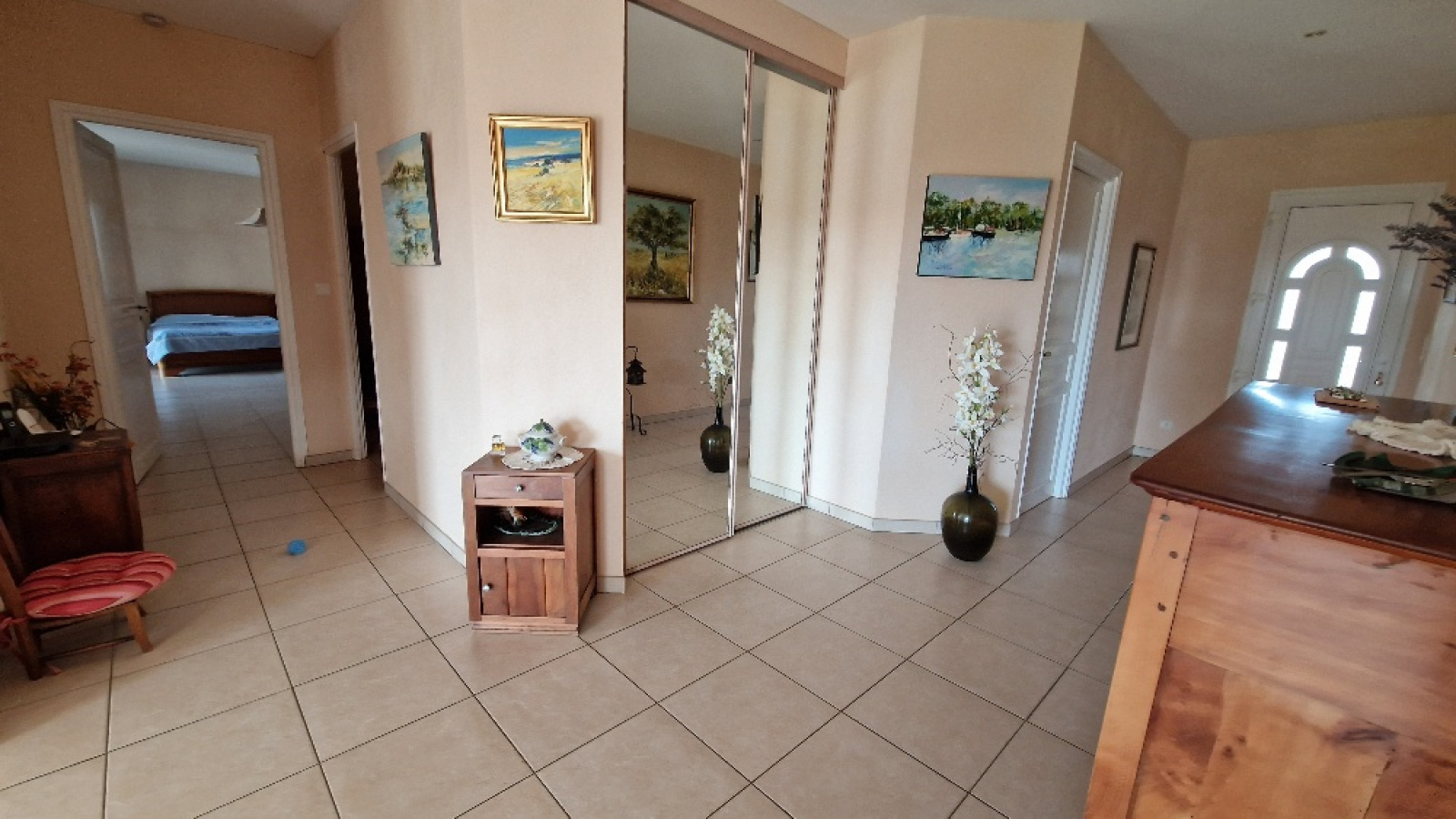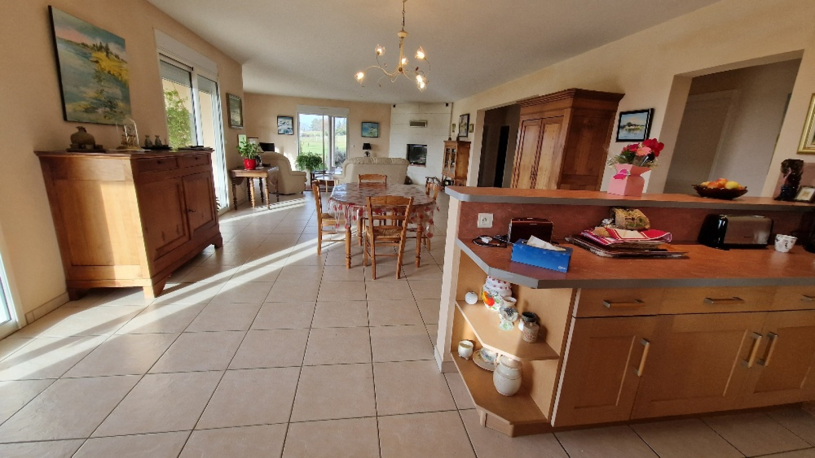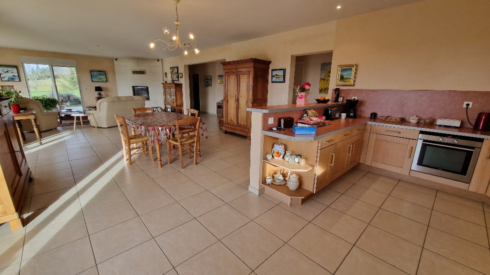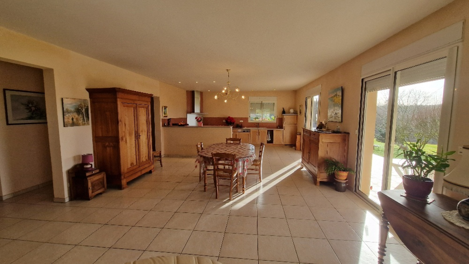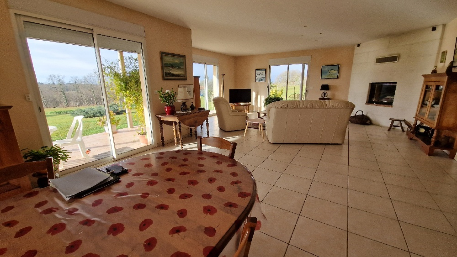 Propriété en vente en exclusivité avec l'agence immobilière Terres et Pierres en Périgord. Secteur Sorges et Ligueux - A moins de 20 kms de Périgueux et à 3kms des commerces. A la campagne, propriété avec un parc fermé (env 1H5) dont portail électrique à l'entrée. Construction réalisée par des artisans locaux (renommés) (dossier construction complet). Construction 2005, maison individuelle (surface batîe au sol, env 270m²), plain pied avec un garage attenant (env 53m²) avec 2 portes électriques. Un atelier attenant (env 70m²) (chauffage au sol), avec un toit cathédrale et un toilette + lave mains. (possibilité d'aménager 2 chambres). Cette habitation, très lumineuse, se compose : un entrée avec espace de rangement, un couloir, un wc séparé, une magnifique pièce de vie salon/cuisine équipée, dont 4 baies vitrées avec accès à la terrasse. Ce salon propose une belle cheminée mûrale, fermée. 2 chambres spacieuses, avec chacune son wc, sa salle d'eau et sa salle de bain (baignoire balnéo + cabine douche). Une de ces chambres a un accès direct sur la terrasse couverte et non fermée. Terrasse plein sud. Chauffage au sol au fioul basse température. Cuve fioul enterrée (env 3000L). Isolation : double vitrage. Volets électriques. DPE (nouvelle version) : classe D. Assainissement individuel. Une cuisine d'été avec accès sur la façade principale. Contacter Mr Michel Lachaud, agent commercial immobilier, tél pro 06/87/10/61/88 pour tout complément d'information et visiter ce joli lieu de vie en Périgord blanc.
