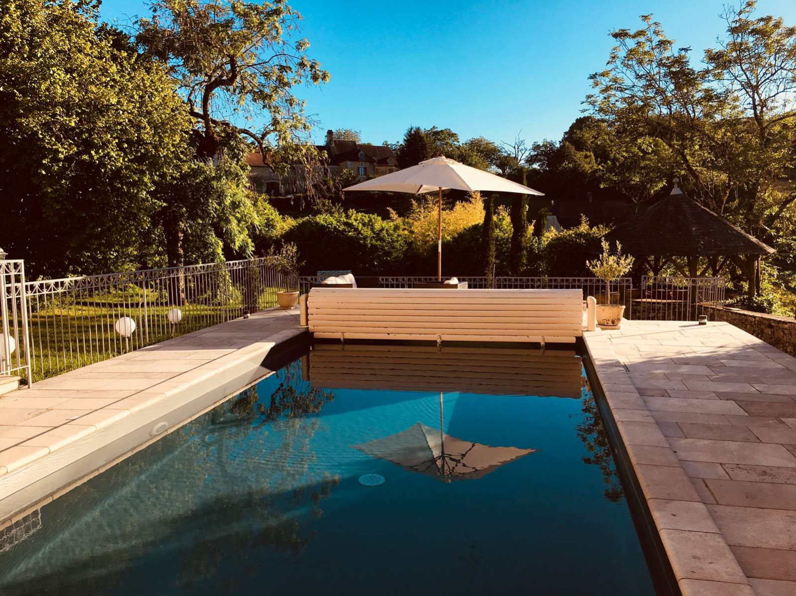 Agréable jardin clos et arboré d'environ 2545 m². Piscine chauffée. Toiture ok. Fort potentiel pour activités restaurant/réceptions ou chambres et table d'hotes. Autoroutes A89 à 20 mn. Aéroport Brive à 50 mn. Commerces de 1re nécessité dans village. Tous commerces et services à moins de 15 mn. Internet haut débit.