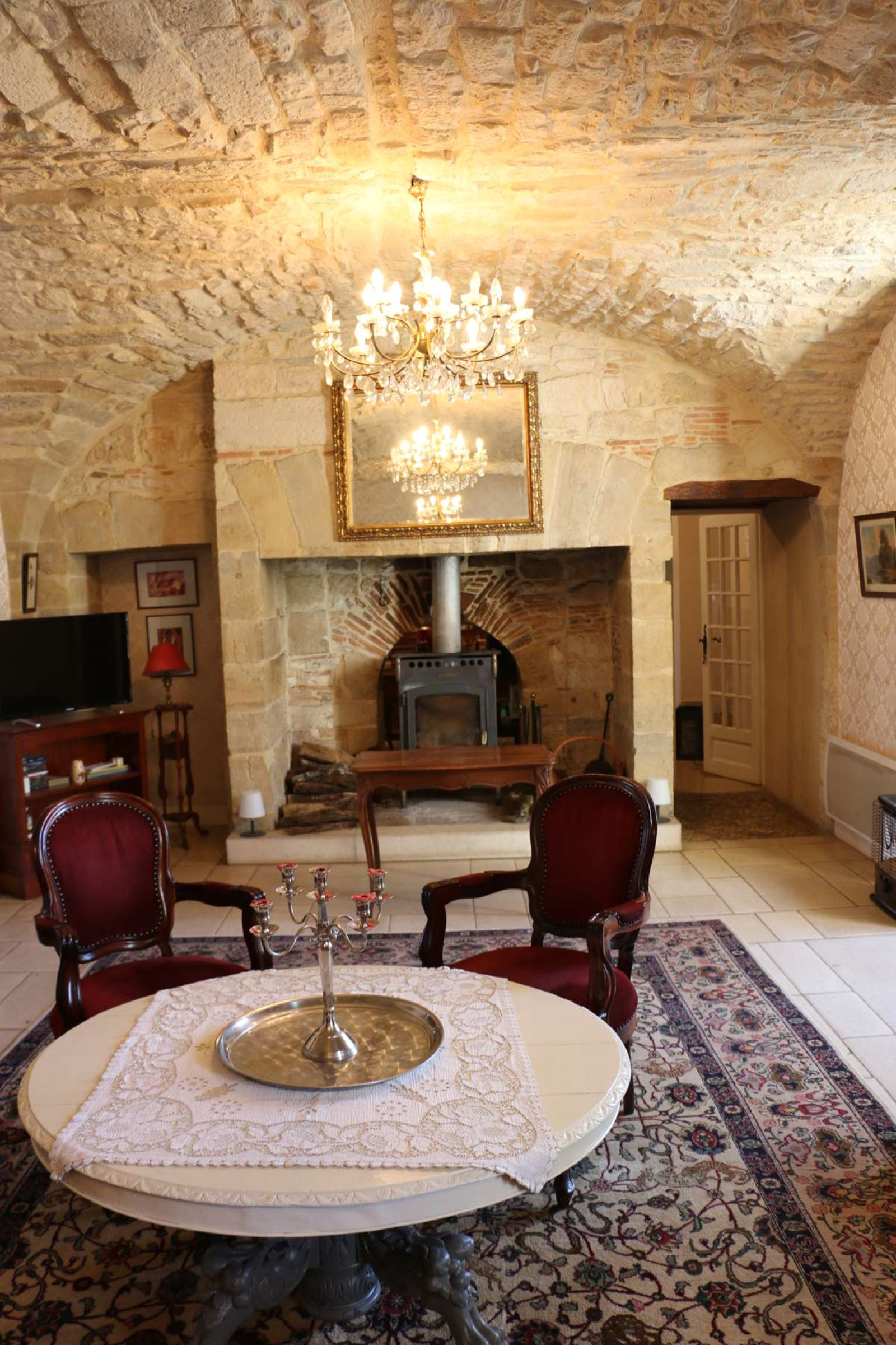-en rez-de-chaussée: entrée, galerie lumineuse d'environ 60 m², grand salon vouté d'environ 50 m² et avec cheminée, cuisine équipée séparée, wc.