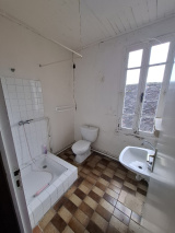 Au calme, maison de bourg à rénover: grande pièce de vie en rez-de-chaussée (environ 43 m²). A l'étage: 3 chambres, couloir, salle d'eau avec wc. Jardin d'environ 110 m² en face de la maison. Remise d'environ 15 m². toiture ok. Toiture ok. Tout-à-l'égout. Pas de chauffage actuellement.
