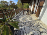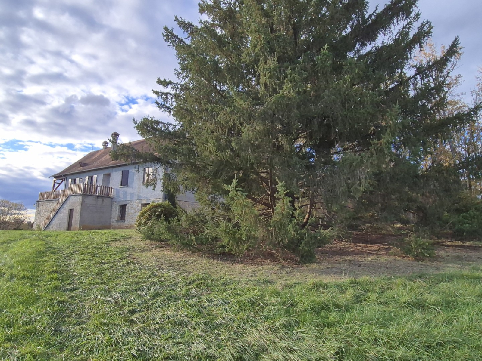 A l'étage (partie habitation) (env 122m²) : un palier/dégagement, une cuisine aménagée et une salon (env 32m²) donnant sur une grande terrasse (en partie couverte) (magnifique vue), un bureau, toilettes séparés, une salle de bain (baignoire), un dégagement donnant sur 4 chambres.