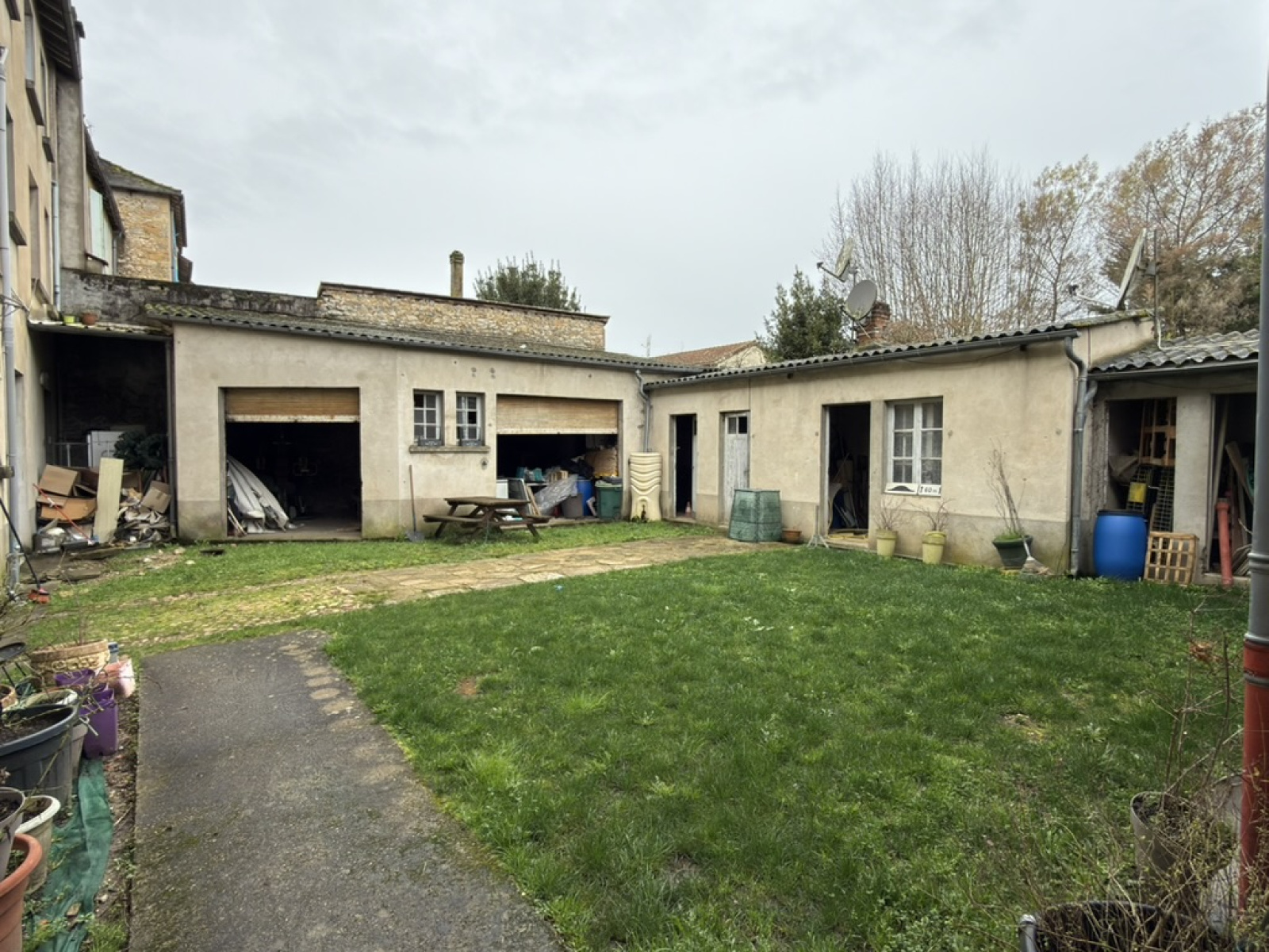 Immeuble de rapport au centre d’Exideuil : 4 appartements + 2 locaux commerciaux, cour privative avec 4 remises.