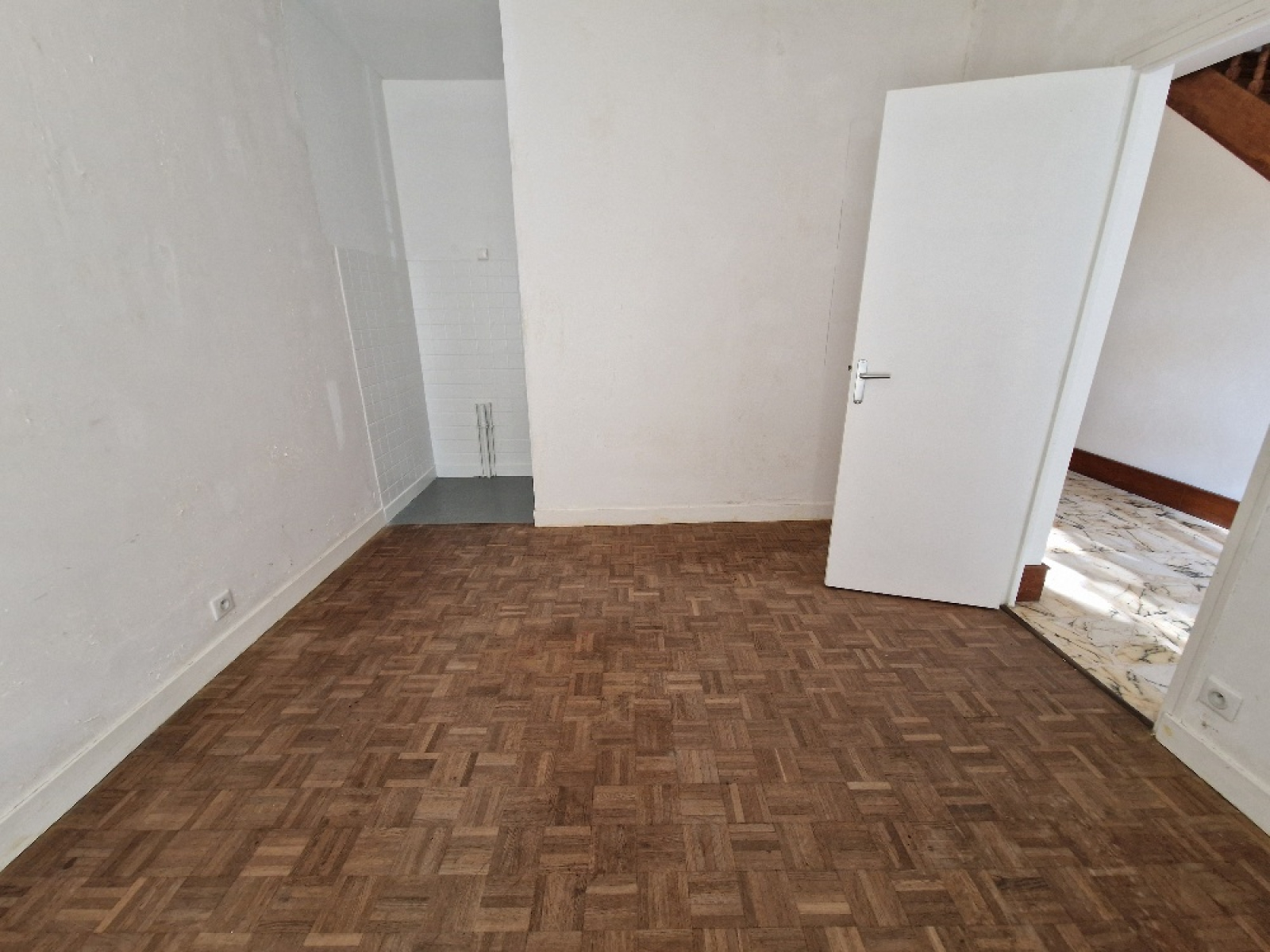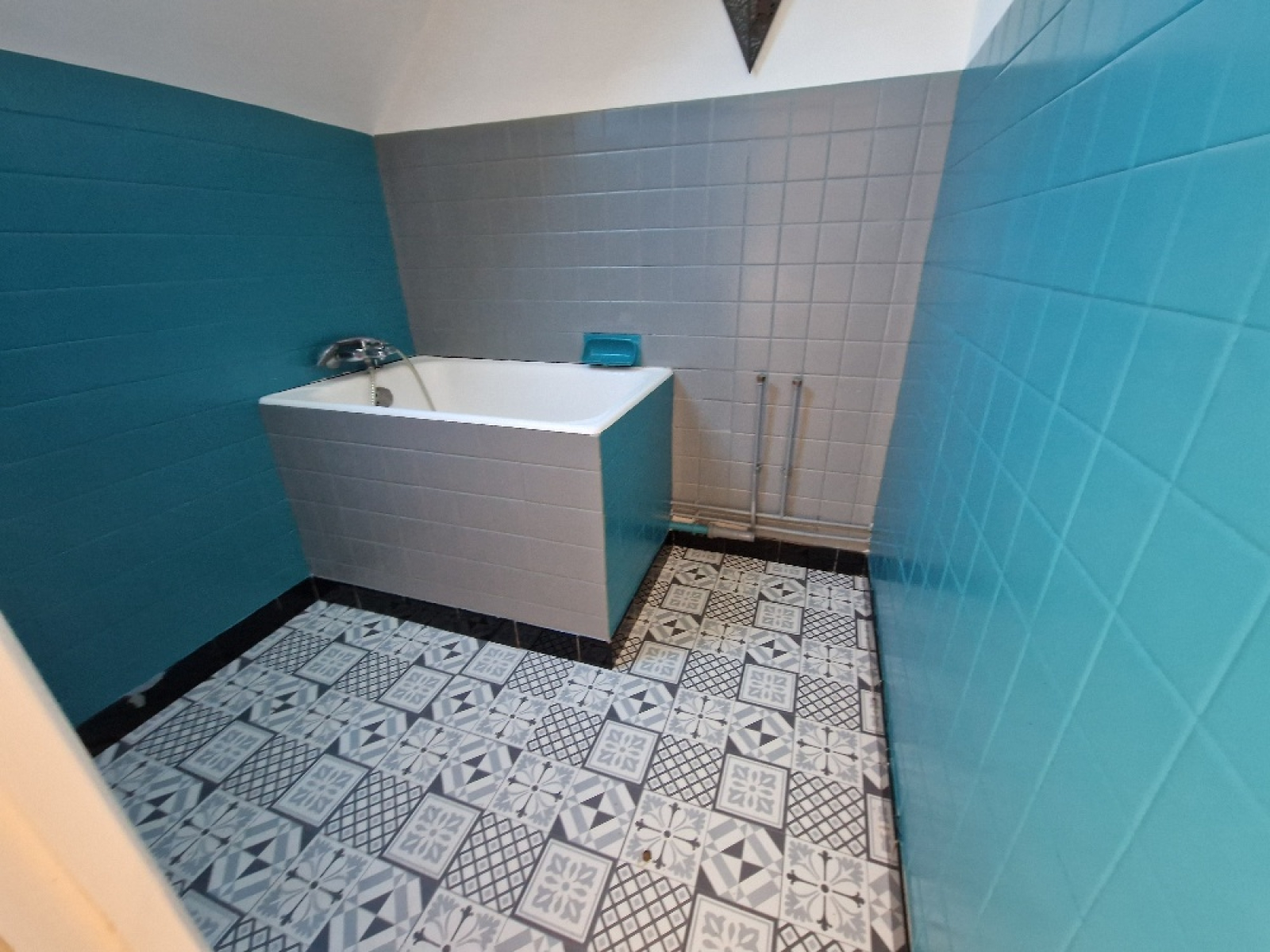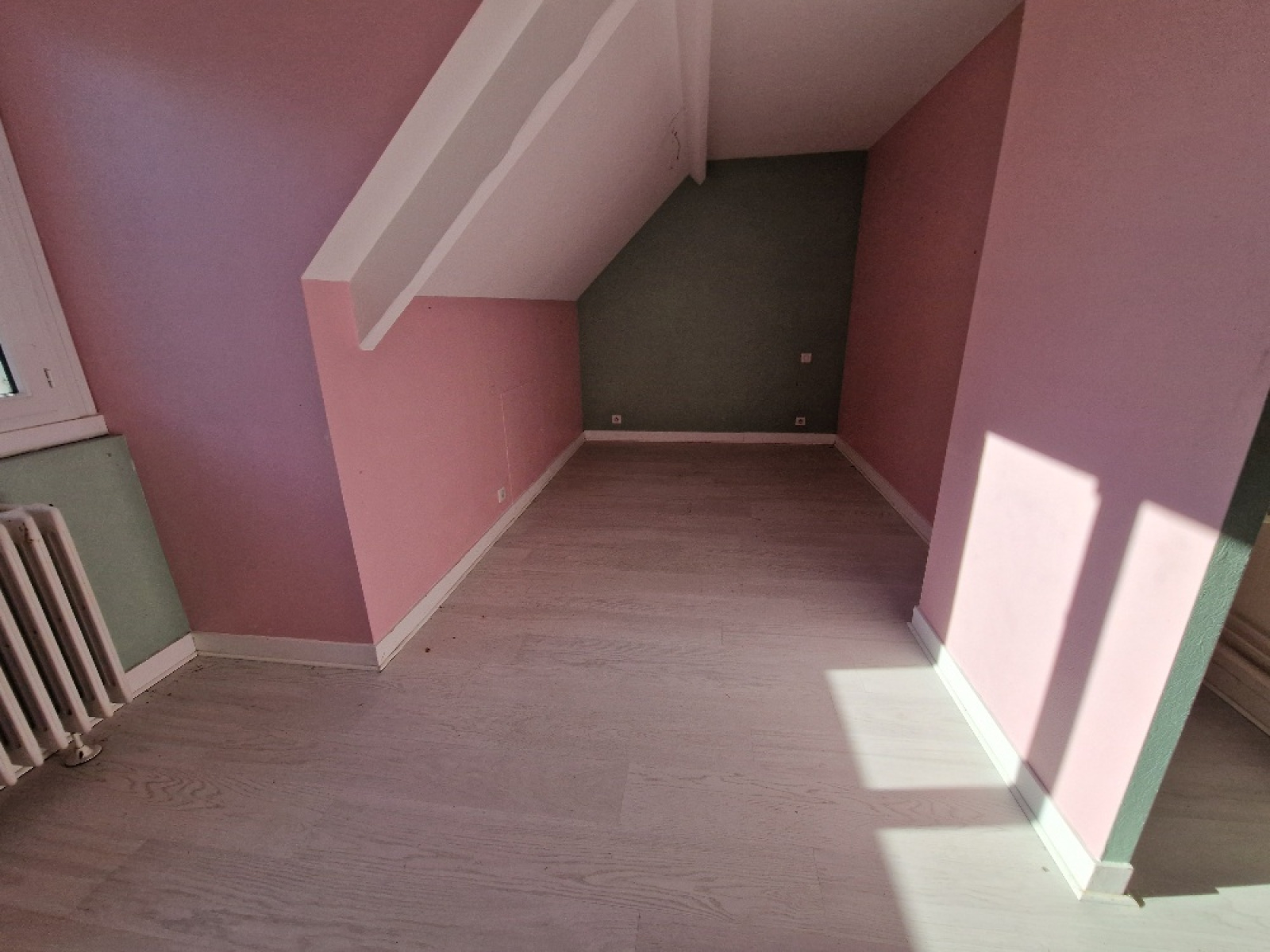 ETAGE = un palier, 3 chambres (env 15, 13 et 12m²), une salle de bain (env 4m²) (baignoire et wc), un grenier avec l'isolation posée au sol. Taxe foncière 2025 = 948 €.