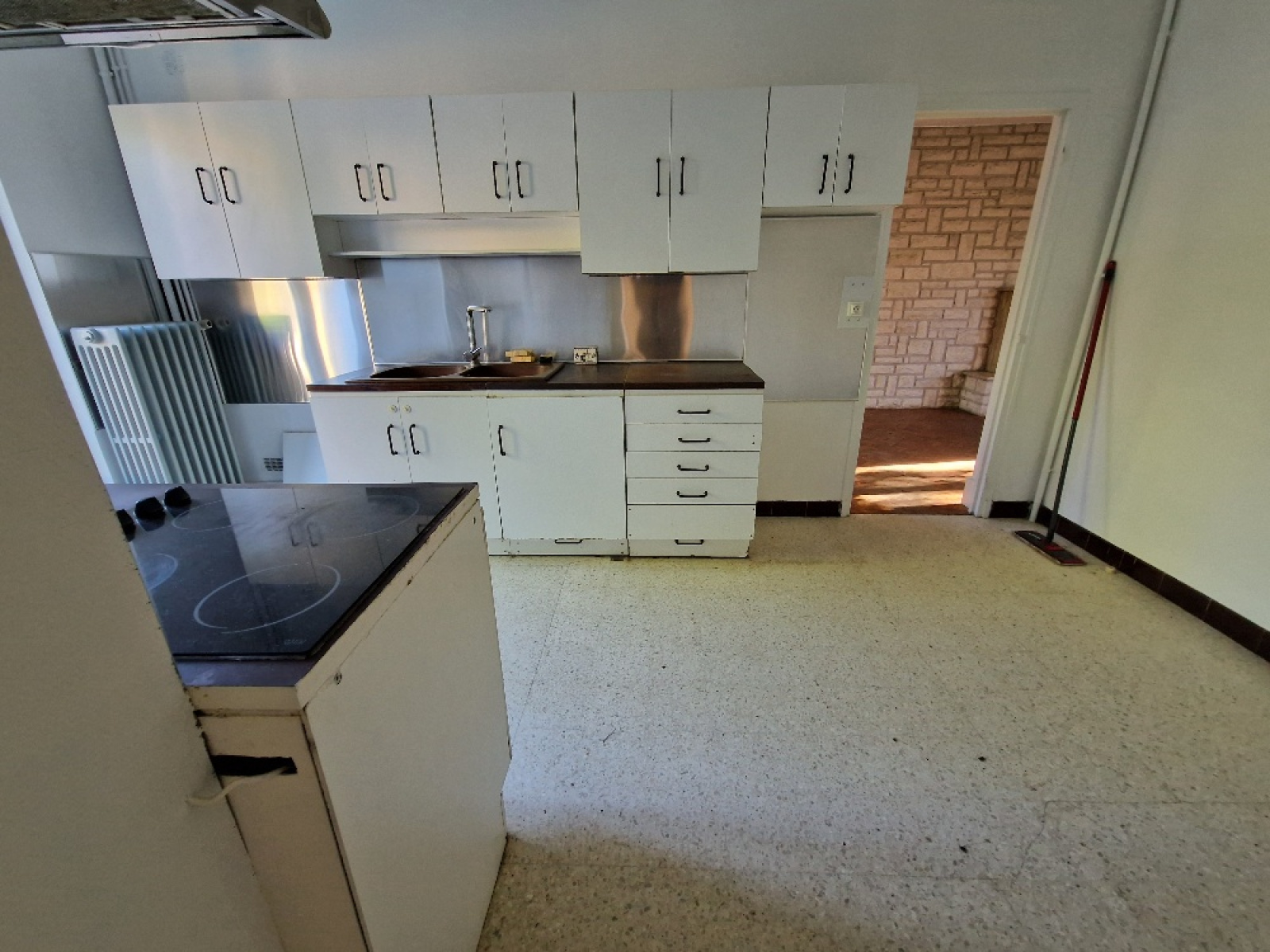 Cette habitation se compose en rdc : une entrée (env 15m²), un grand salon (env 40m²) dont une cheminée (esapce lumineux) et donnant sur les 2 façades. Une terrasse avec accès depuis la cuisine et salon. 2 chambres (env 12 et 10 m²) dont une, avec un lavabo, une cuisine (env 13m²), une salle d'eau (douche+vasque) (env 4m²), un wc séparé.